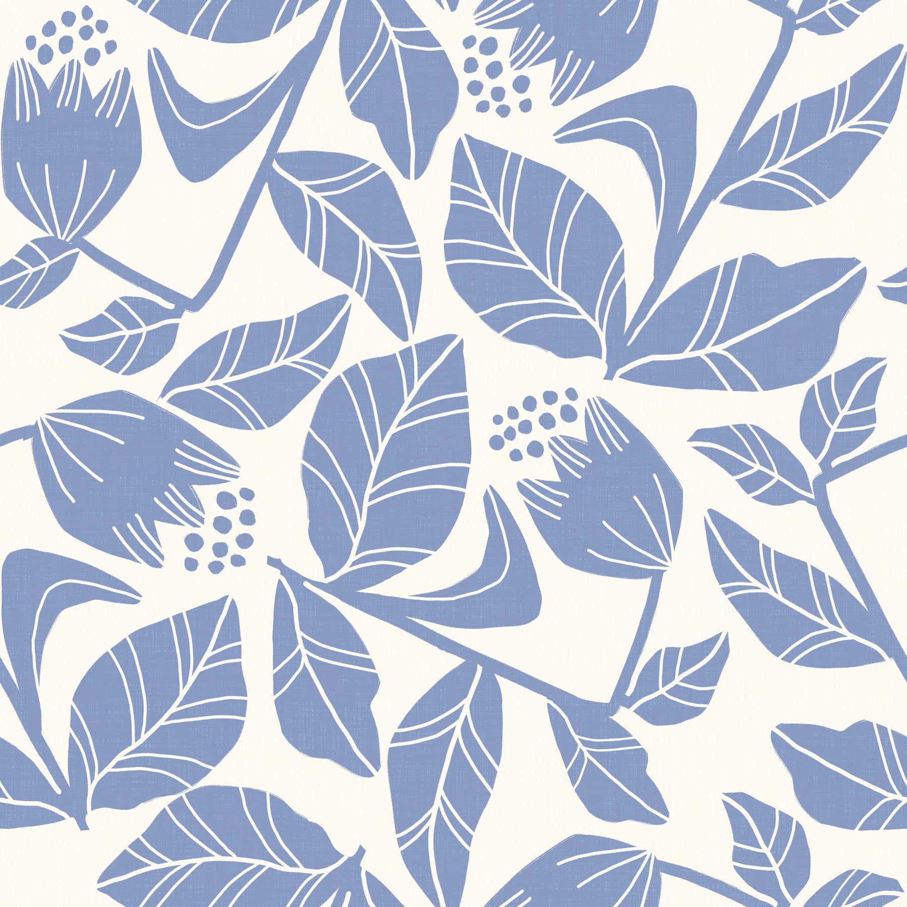 Bring undervurderet elegance til ethvert rum med dette sofistikerede blad- og blomsterdesign. Blå blomster med forskellige blade pryder et elfenbenbaggrund. Dette tapet til vægge har stiliserede former og en blød farvehistorie. Ideel til et badeværelse, børnehave eller kontor. Det præsenterer en balance mellem enkelhed og charme, der tilbyder en alsidig accent, der supplerer forskellige designordninger og lyser interiøret med lette toner.