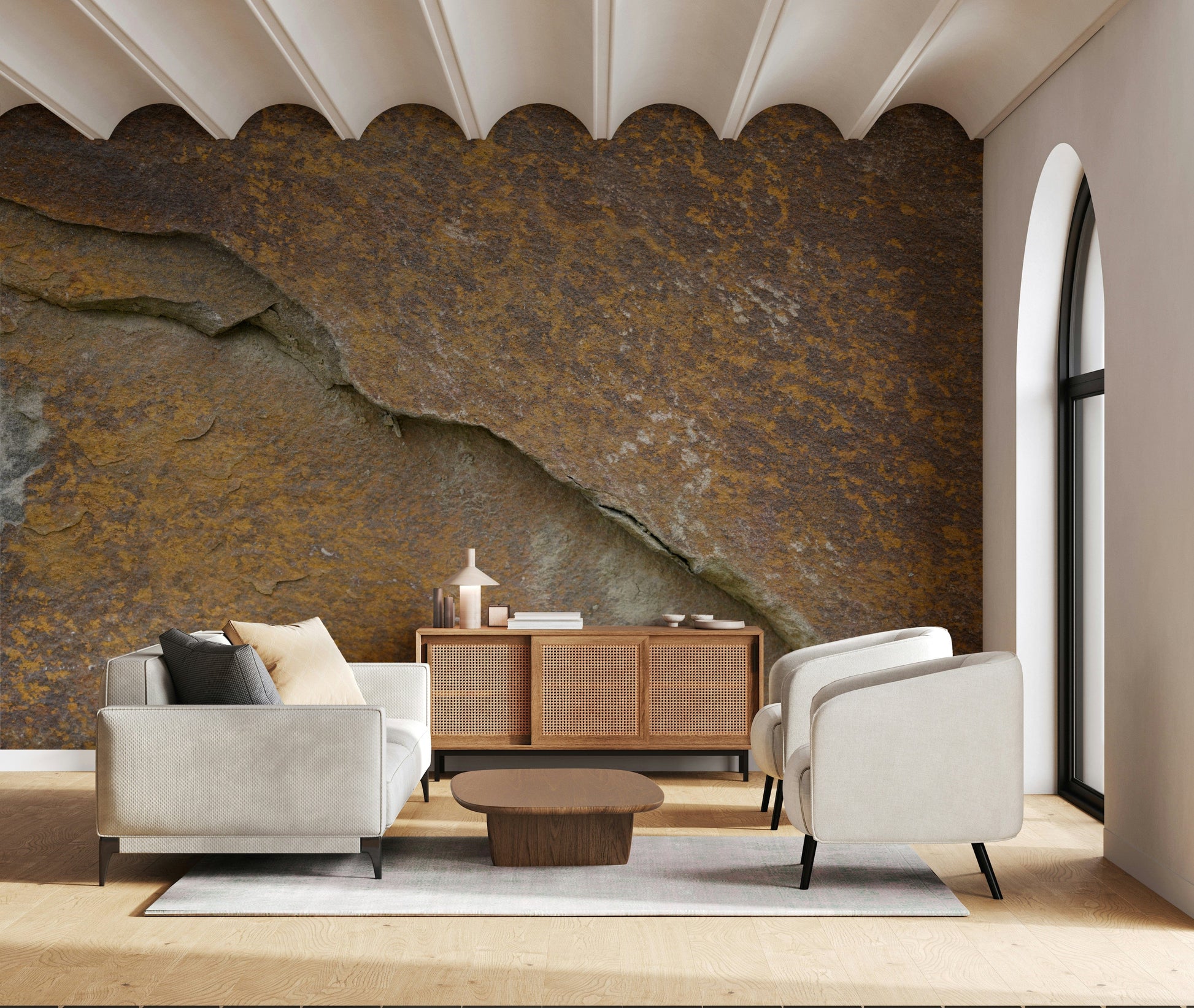 Transform your space with this realistic cracked stone wallpaper for walls. Its deep earth tones and natural rock formations introduce a sense of rugged elegance. The pattern adds depth and texture to any room, bringing the outdoors inside. This is well-suited to modern, minimalist, and rustic interiors. Consider using it as a feature wall in your living room, home office, or study to create a unique and grounded atmosphere.