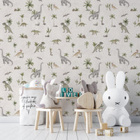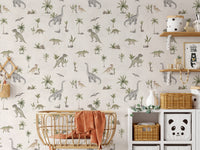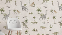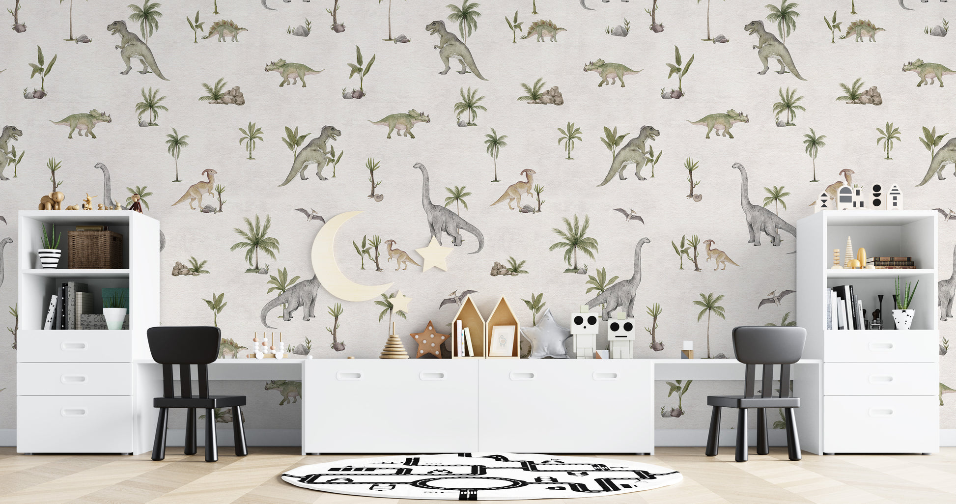 Giv den forhistoriske verden liv på dit lille barns værelse med cremebeige dinosaur tapetDen bløde cremefarvede baggrund kombineret med yndige dinosaurmotiver skaber en venlig og legende atmosfære. Dette tapet er ideelt for enhver dinosaurelsker og forvandler rummet til et spændende eventyrområde, samtidig med at det bevarer en rolig og varm æstetik. Det er perfekt til børneværelser, legerum eller soveværelser og passer smukt til en række møbelfarver, fra neutrale nuancer til lyse accenter.
