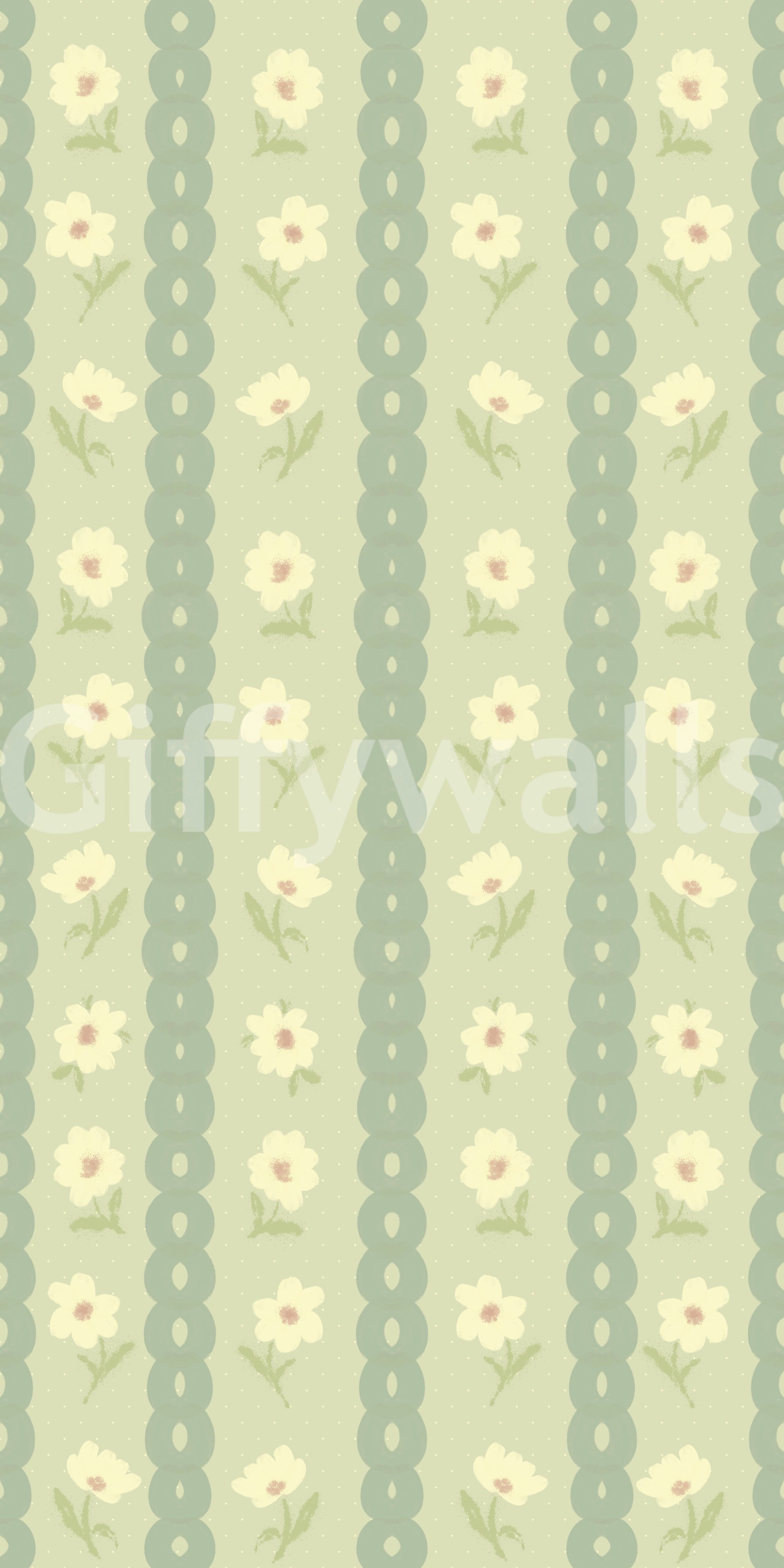 Forvandl ethvert rum med dette charmerende vægtapet med margueritfarver. Dets dejlige blomstermønster og bløde, afdæmpede farvepalet bringer et strejf af ro og elegance til dine opholdsrum. Lodrette striber af abstrakte former komplementerer sarte blomster og blade og skaber et klassisk, men moderne look. Ideelt til soveværelser, børneværelser eller stuer, varmer dette tapet øjeblikkeligt dit opholdsrum op. Designet fremhæver skønheden i din indretning og tilbyder en sofistikeret baggrund, der passer godt til en række forskellige møbelstile. Bring den beroligende indflydelse og enkle elegance hjem i dag.