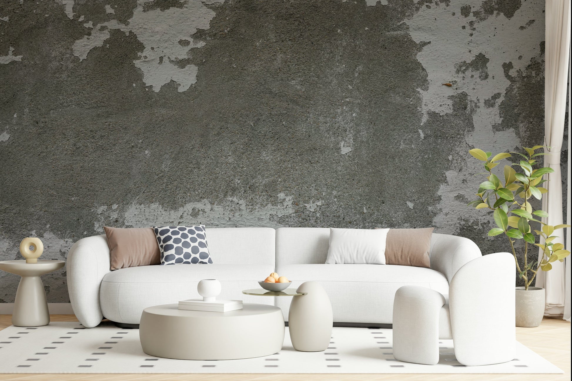 Introduce texture and character to your walls with this distressed wallpaper. The design showcases the beauty of imperfect surfaces, with its weathered concrete and remnants of peeling white paint. The neutral color palette makes this wallpaper versatile for any space, including living rooms, offices, and bedrooms. Use this wallpaper for walls to achieve an urban, sophisticated atmosphere that enhances your home's interior. Transform a room with this striking and unique wall covering.