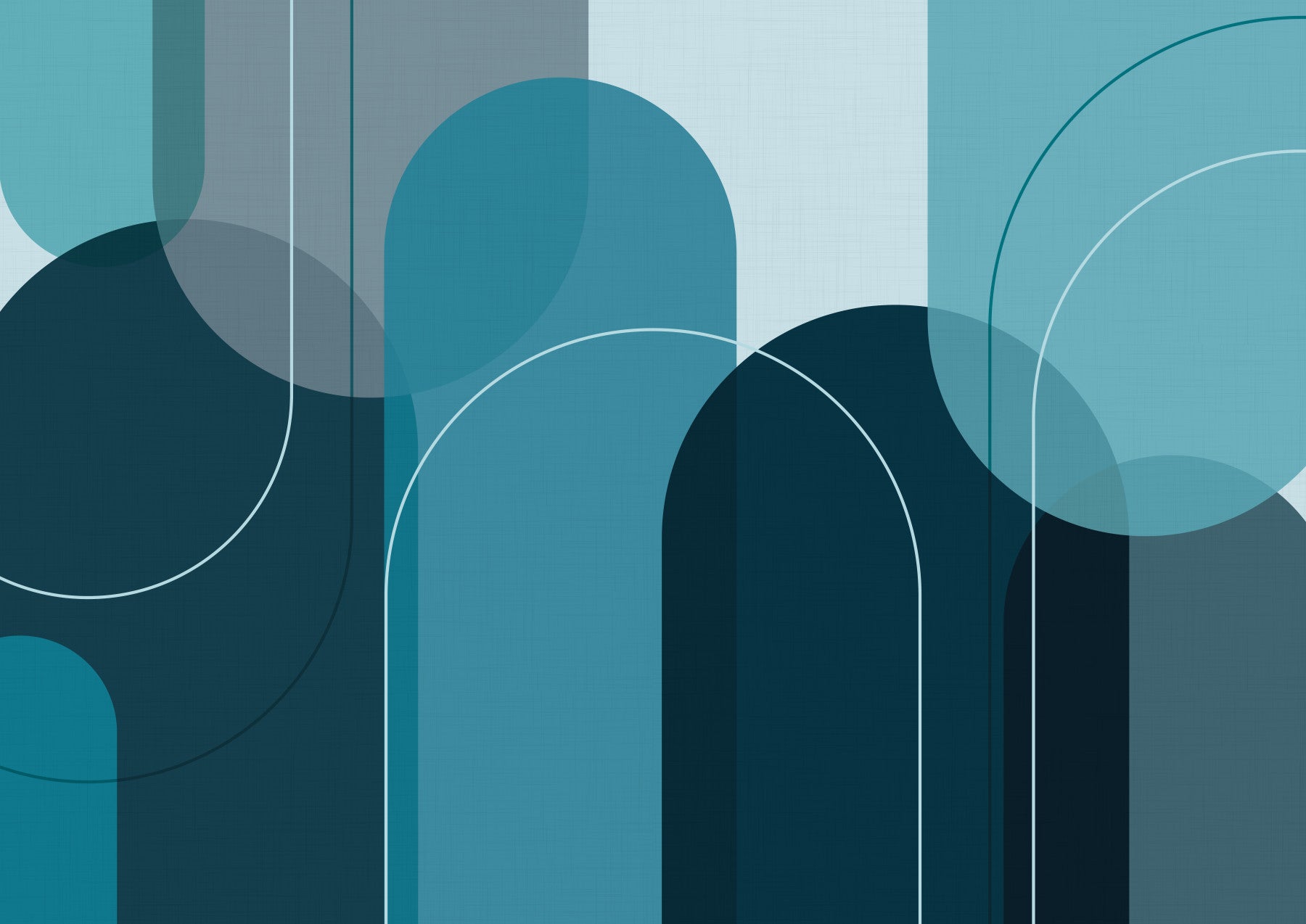 Oplev visuel harmoni med dette geometriske tapet. Dens design har et fængslende samspil af overlappende turkis og mørke tealbuer, hvilket skaber en følelse af dybde og bevægelse. De rene linjer og præcise former skaber en moderne og sofistikeret atmosfære, mens den beroligende farvepalet fremmer afslapning. Perfekt til en moderne omgivelse tilføjer dette tapet et strejf af undervurderet elegance til ethvert rum. Dets alsidige design fungerer godt i stuer, soveværelser eller endda kontorlokaler, der blandes problemfrit med forskellige indretningsstilarter.