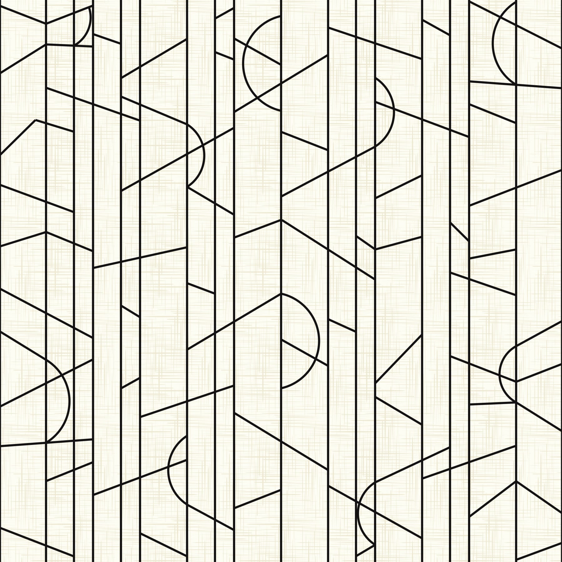 Dette slående tapet viser et sofistikeret samspil mellem sorte streger og geometriske former mod en struktureret, off-white baggrund. Designet har et gentagende mønster af elegante, Art Deco-inspirerede linjer, der skaber en følelse af raffineret struktur og visuel rytme. Subtile kurver og semi-cirkler kontrasterer med de skarpe vinkler og tilføjer et strejf af fluiditet og bevægelse. Den strukturerede baggrund tilføjer dybde og forbedrer den samlede luksuriøse fornemmelse. Dette sort / hvide mesterværk bringer et strejf af moderne elegance og minimalistisk raffinement til ethvert rum.