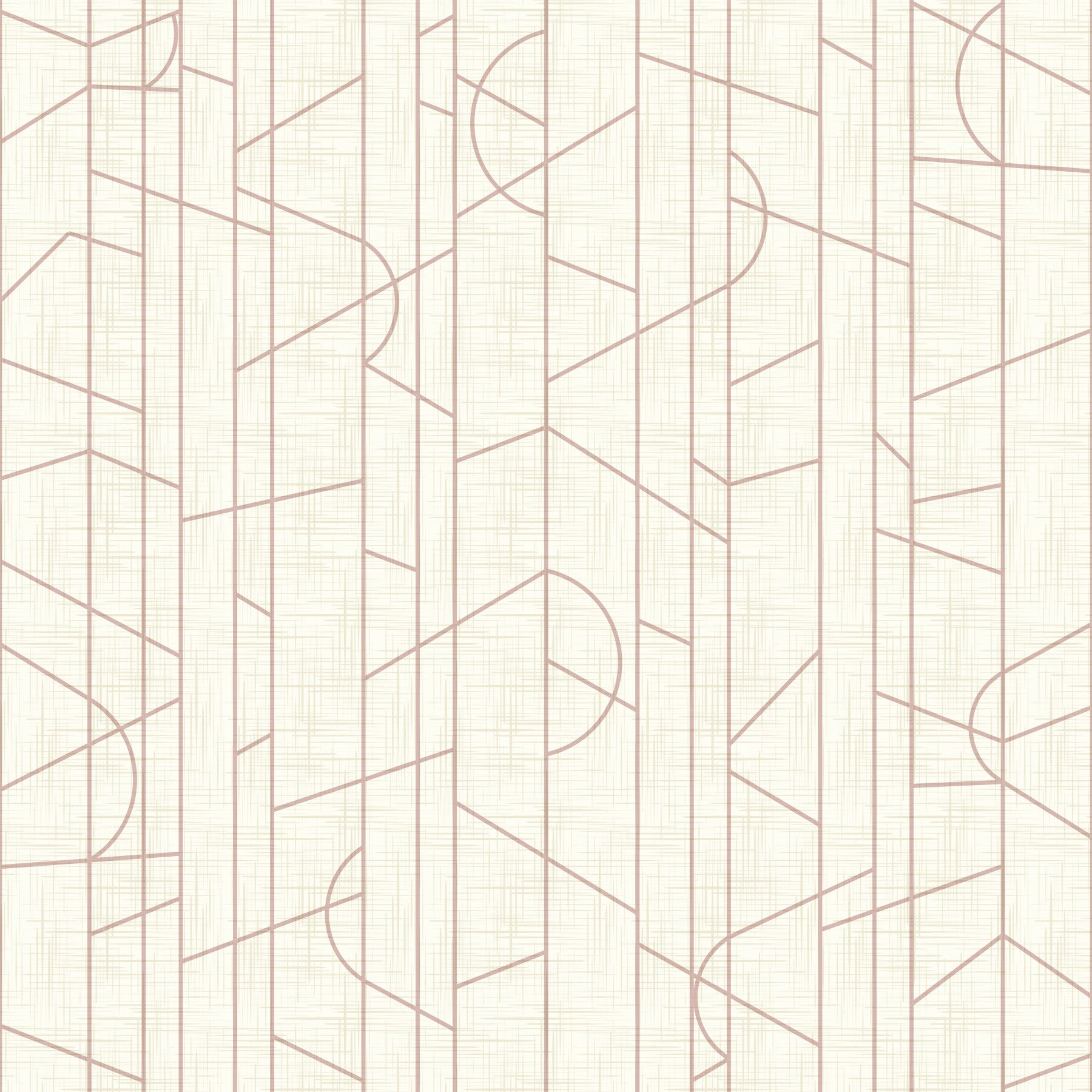 Dette tapet viser et sofistikeret samspil mellem elegante linjer og en lys rosenrød farvetone. Delikate rødmede geometriske mønstre, herunder krydsende linjer, trekanter og delvis cirkler, er kunstigt arrangeret mod en struktureret off-white-baggrund, der minder om linned. Designet skaber en beroligende, men alligevel moderne æstetik, perfekt til at tilføje et strejf af undervurderet elegance til ethvert rum. De subtile lyserøde lyserøde accenter giver en blid varme, der forbedrer den samlede raffinerede og harmoniske fornemmelse. Dette tapet er ideelt til dem, der søger et minimalistisk, men alligevel visuelt engagerende design med et strejf af feminin charme.