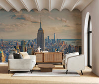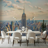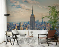 Capture the splendor of New York City with this stunning wallpaper for walls, showcasing the iconic Empire State Building amidst a sprawling cityscape. The soft, warm tones of sunrise paint the sky, adding a touch of serenity to the urban landscape. This design brings a sense of grandeur and sophistication, making it ideal for a living room, office, or study. The detailed architecture and subtle colors harmonize with modern or classic interiors, creating a captivating focal point that sparks conversation and adds depth to any space.
