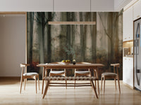 Invite the serenity of a misty woodland into your home. This design showcases a forest scene with an artistic, hazy effect. The muted tones of beige, brown, and gray create a soothing and timeless feel. This wallpaper for walls works wonderfully in a bedroom, living room, or hallway. It brings a touch of nature inside, especially when paired with wood accents and natural light. Let this design transform your interiors.