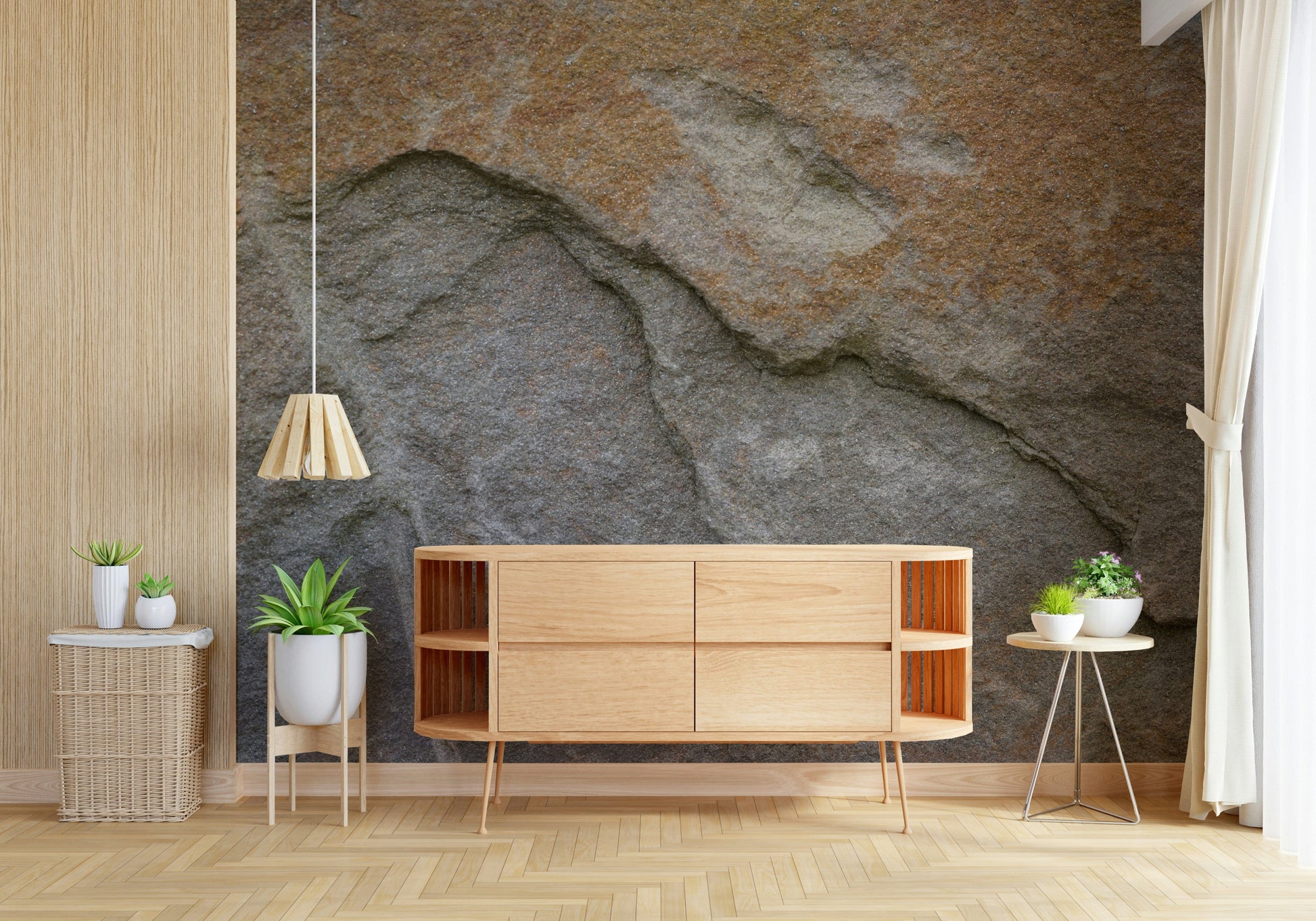 Introduce a tactile dimension to your walls with this unique wallpaper. The design captures the detail and nuance of an eroded rock face, showcasing layers and textures. Shades of gray and brown blend to create a soothing, earthy palette. The natural variation and visual depth offer more than flat color can. Use this wallpaper for walls to give any room a sense of history. It works well in hallways, studies, or any space where you want to project a sense of grounded sophistication. Complement industrial decor, bohemian style or rustic interiors with the subtle organic complexity.