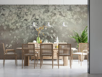Elevate your interiors with this artistic floral wallpaper for walls. The image showcases a stunning tree with delicate white blooms against a textured gray backdrop. The design evokes a sense of tranquility and sophistication, perfect for creating a relaxing environment. Consider using this wallpaper in your bedroom, study, or living room. Its subtle colors and refined design complement various interior styles, bringing a touch of nature indoors.