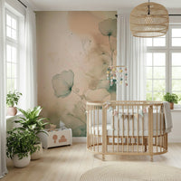 Embrace understated elegance with this beautiful wallpaper for walls. The design presents delicate floral outlines gently merging with watercolor washes. Soft greens, tans, and hints of blue create a light and airy feel. This wallpaper works wonders in a bedroom, living area, or even a home office, imparting a sense of peace and refined style. Its gentle aesthetic complements minimalist and boho-chic interiors, adding a touch of nature's grace to your space.