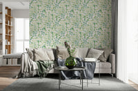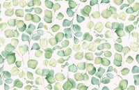 Bring the serenity of nature indoors with this eucalyptus leaf wallpaper for walls by Uta Naumann. A repeating pattern of watercolor eucalyptus branches creates a calm and inviting atmosphere in any room. The soft, muted green and beige tones evoke a sense of peace and freshness. This design works beautifully in bedrooms, bathrooms, or living spaces, adding a touch of organic elegance. Install this wallpaper to transform your walls into a tranquil retreat, instantly enhancing the feeling of space and light.