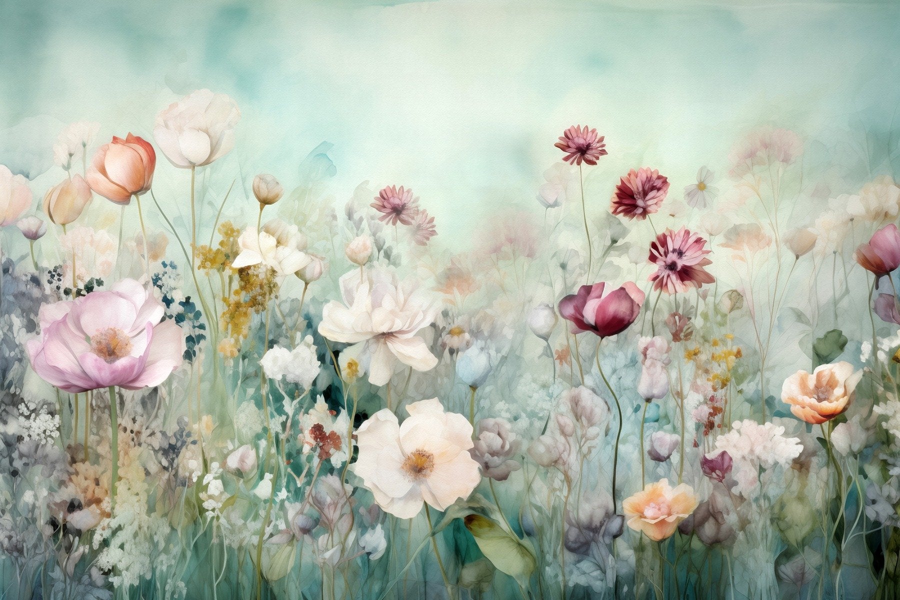 Farverig pastel blomster tapet vægmaleri