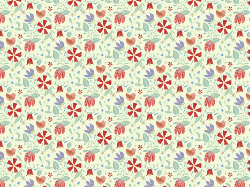 Decorative folksy birds wallpaper for unique and cozy spaces.