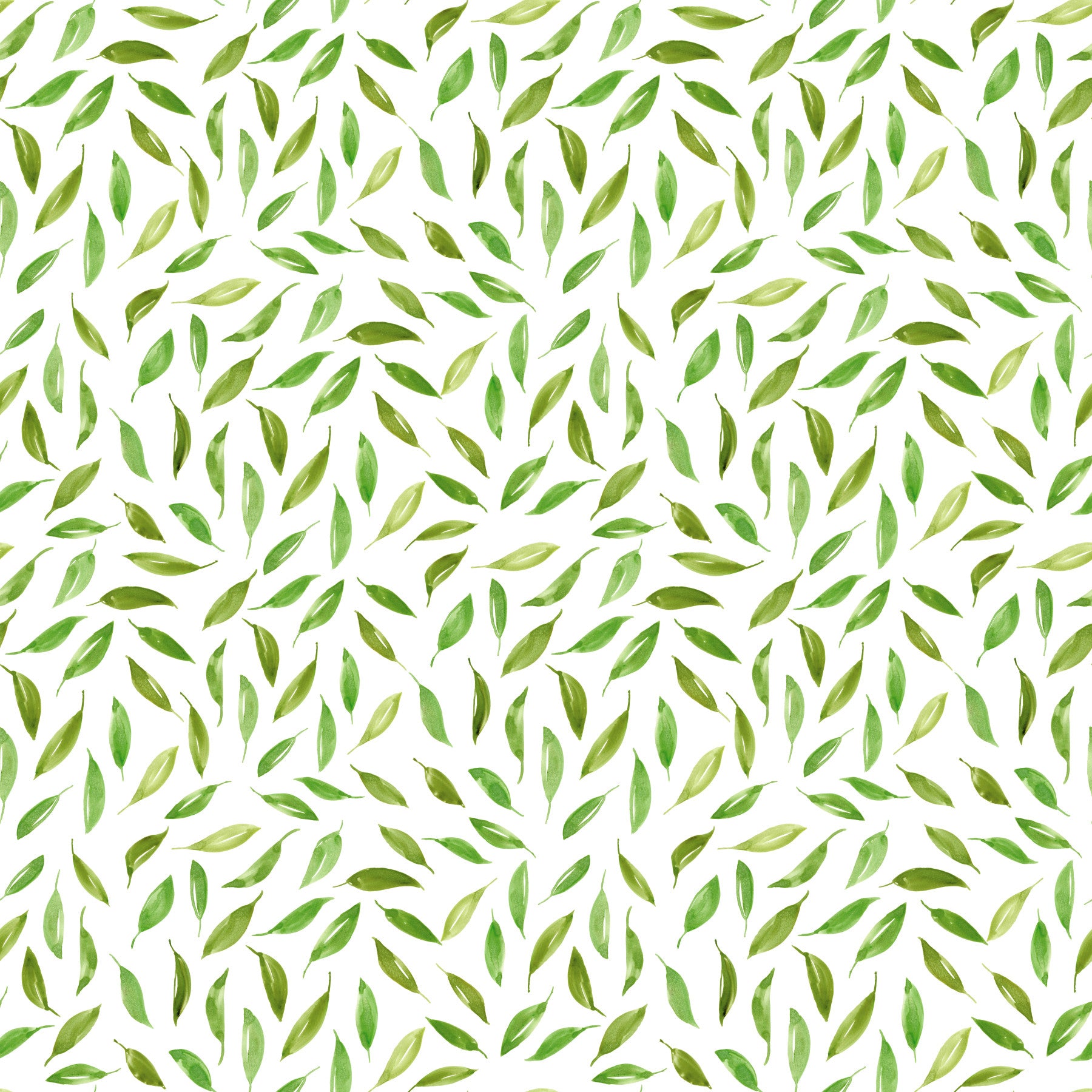 Spring scattered leaves wallpaper in light green tones