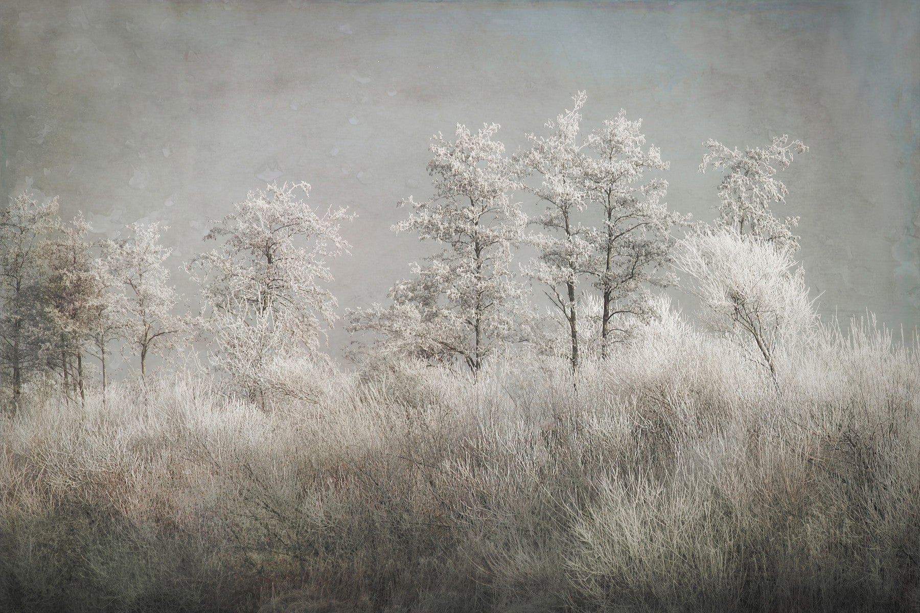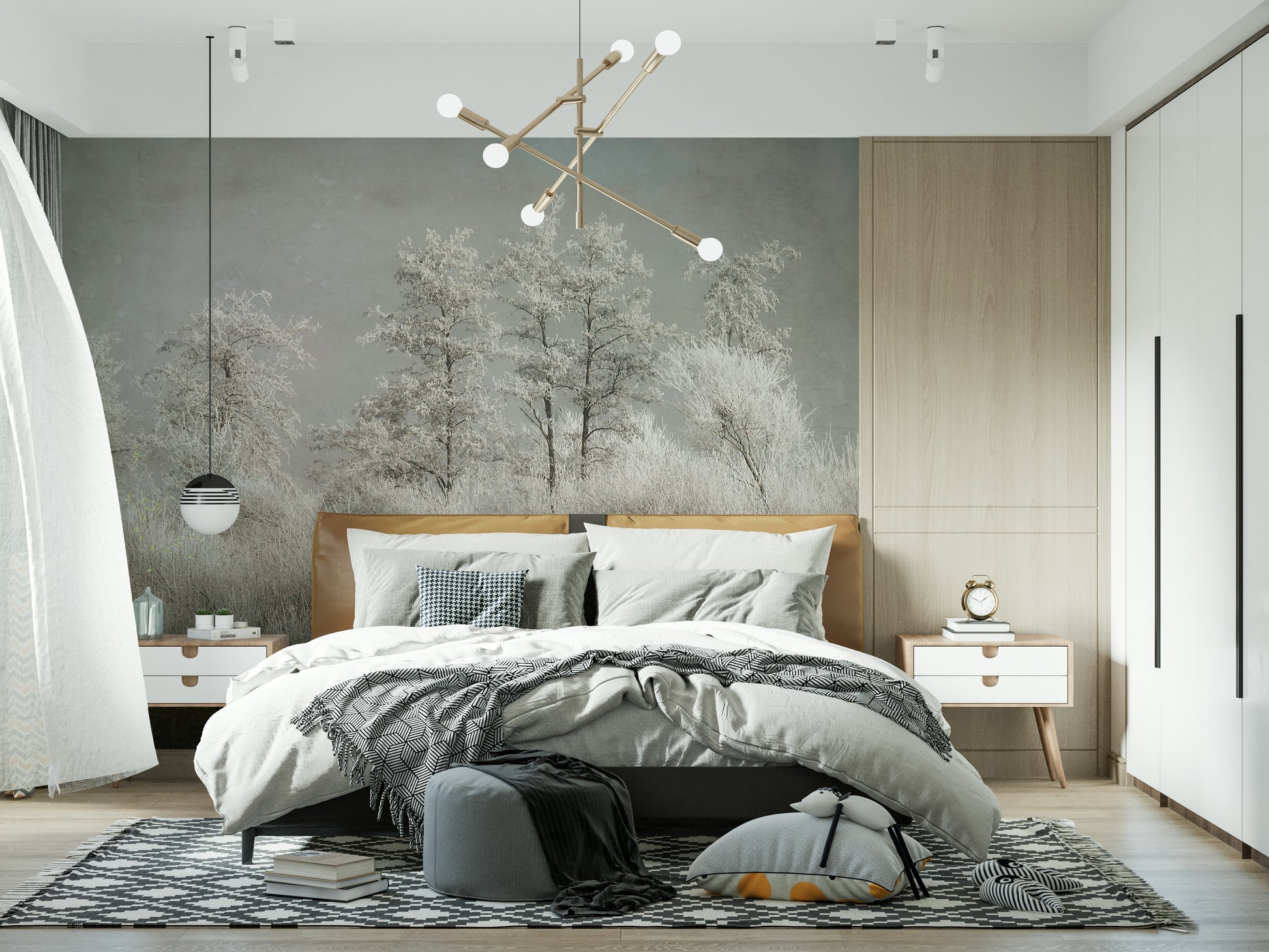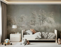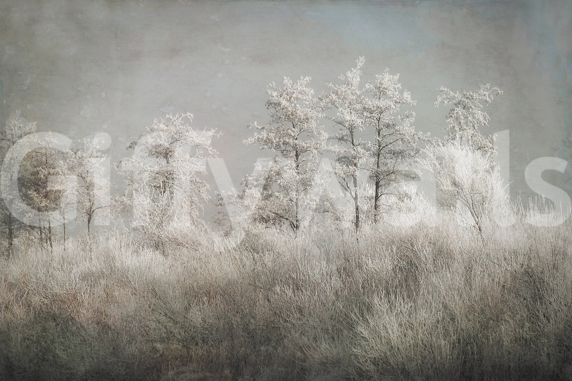 Transform your space with this serene wallpaper for walls. The design showcases a frosted landscape, where ice-covered trees and grasses create a peaceful scene. The cool, muted tones of gray, white, and beige bring a calming effect to any room. This wallpaper works wonderfully in bedrooms, living rooms, or even hallways, offering a touch of nature's quiet beauty. Let this tranquil design bring a touch of winter's stillness to your interiors.