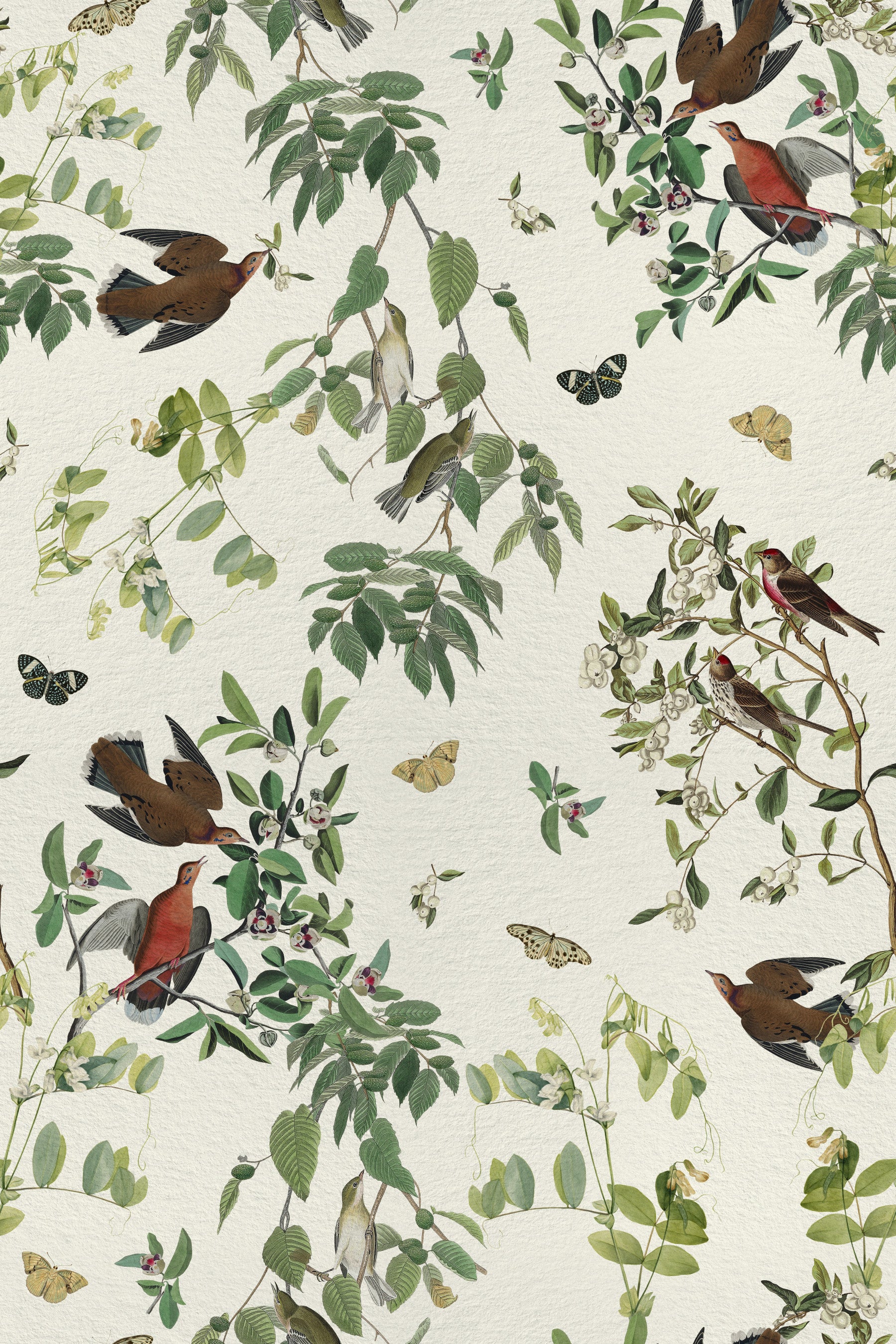 Bring skønheden i en hemmelig have ind i dit hjem med dette charmerende tapet til vægge. Designet har delikate grene pyntet med fugle og sommerfugle, hvilket skaber en finurlig og fredelig atmosfære. Den bløde grønne og creme farvepalet fremkalder sindsro. Dette tapet er perfekt til soveværelser, planteskoler eller ethvert rum, hvor du vil skabe en beroligende og indbydende helligdom. Lad dette klassiske design transformere dit interiør med et strejf af naturlig elegance.