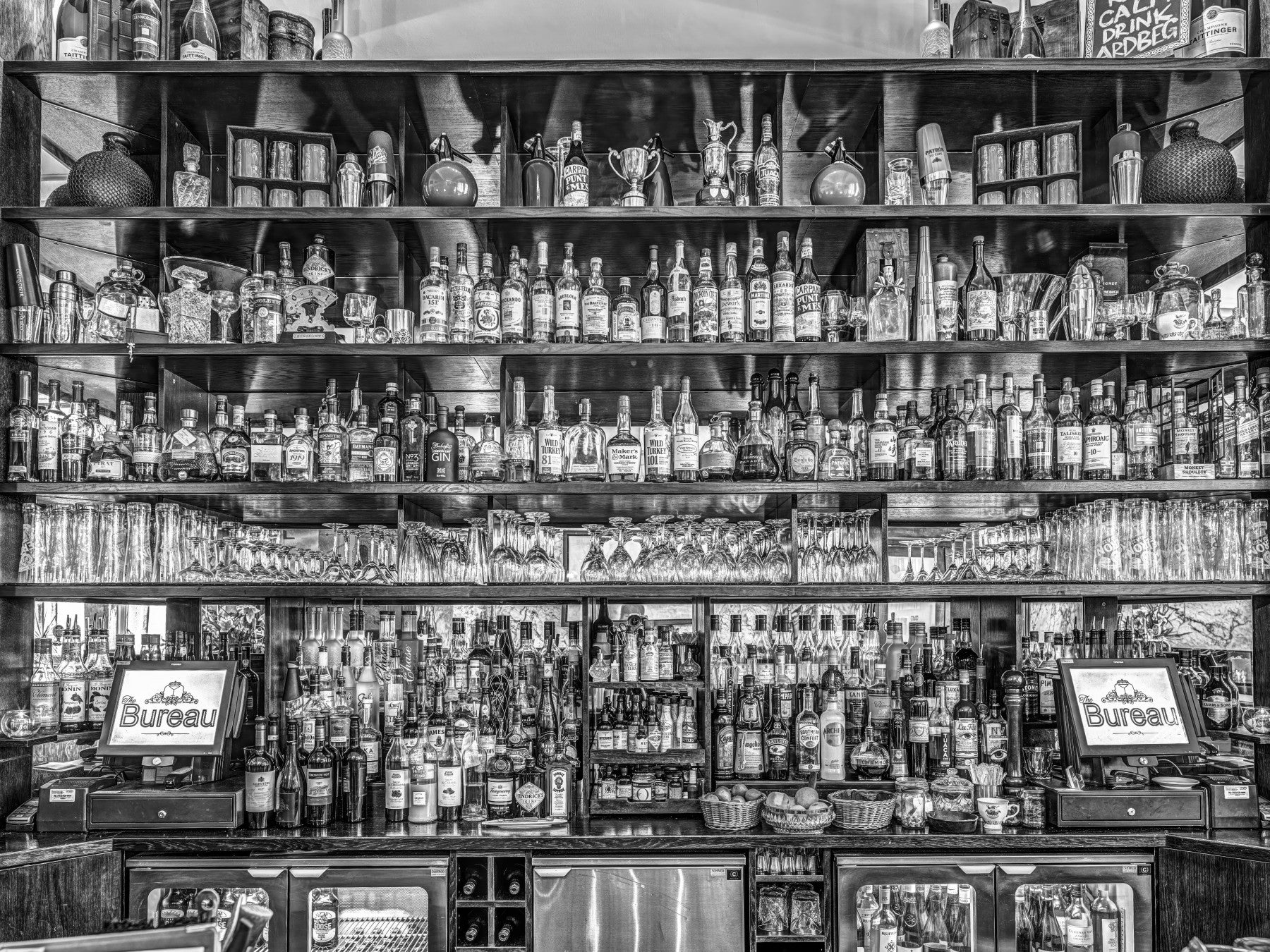 Giv din indretning karakter og nostalgi med Gammel bar vægmaleri. Dette vægmaleri er indfanget i detaljeret sort-hvid og viser en velassorteret vintagebar med rækker af spiritusflasker, glasvarer og charmerende retroindretning. Perfekt til barområder, spisestuer, man caves eller restauranter, og dette vægmaleri skaber en sofistikeret pubstemning med gammeldags charme. Dets monokrome æstetik tilføjer dybde og tekstur og skaber et tidløst look, der nemt komplementerer industrielle, rustikke eller vintage-inspirerede rum.