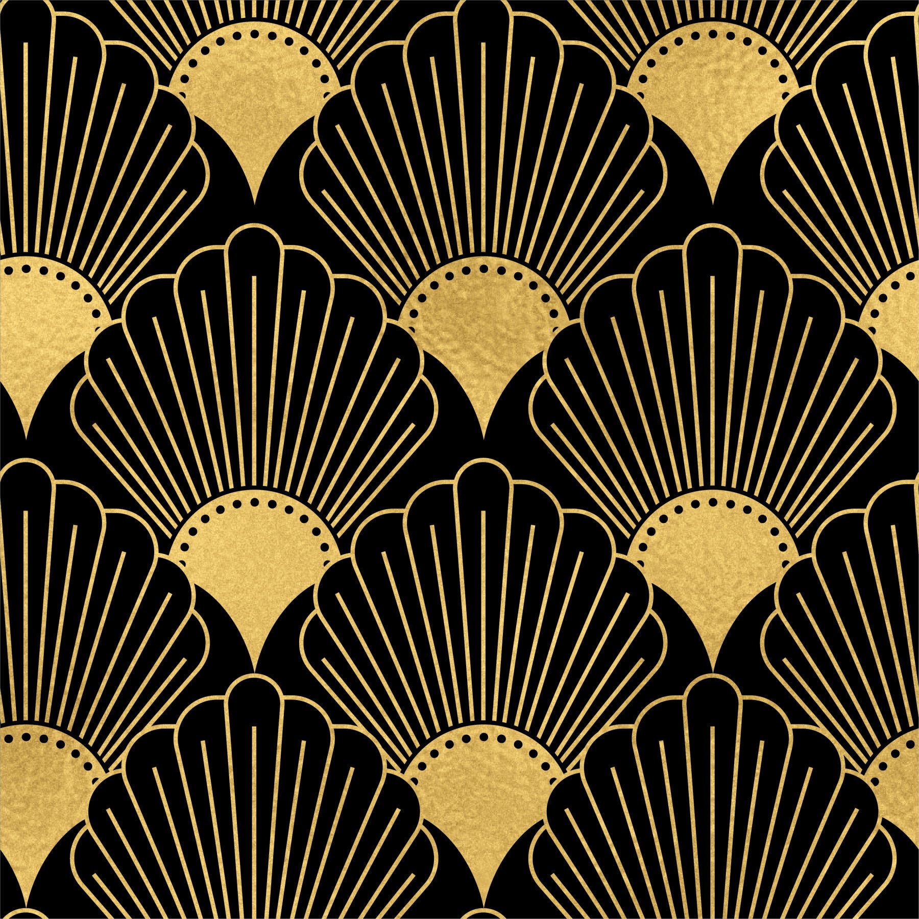 Transform ethvert rum med denne fantastiske Art Deco-inspirerede tapet til vægge. Det slående geometriske design indeholder elegante gulddetaljer mod en kontrasterende sort baggrund. Dets fan-lignende mønster skaber en glamorøs atmosfære, hvilket gør det perfekt til stuer, spisestuer eller endda soveværelser. Det dristige mønster supplerer både moderne og klassisk interiør og tilføjer et strejf af vintage luksus og karakter til ethvert rum.