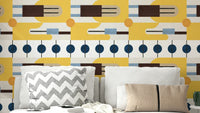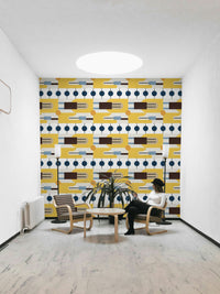 Inspireret af den varme glød af gylden time præsenterer dette tapet en harmonisk blanding af jordagtige toner og geometriske former. Samspillet mellem gule, blå og brune nuancer fremkalder en følelse af varme og ro. De abstrakte former og subtile strukturer skaber et visuelt interessant, men undervurderet design, der supplerer forskellige interiørstilarter. Perfekt til en stue, soveværelse eller endda et hjemmekontor, dette tapet bringer en følelse af rolig raffinement og undervurderet elegance til dit rum. Dens alsidige farvepalet og moderne design gør det til et ideelt valg for dem, der søger et strejf af raffineret atmosfære.