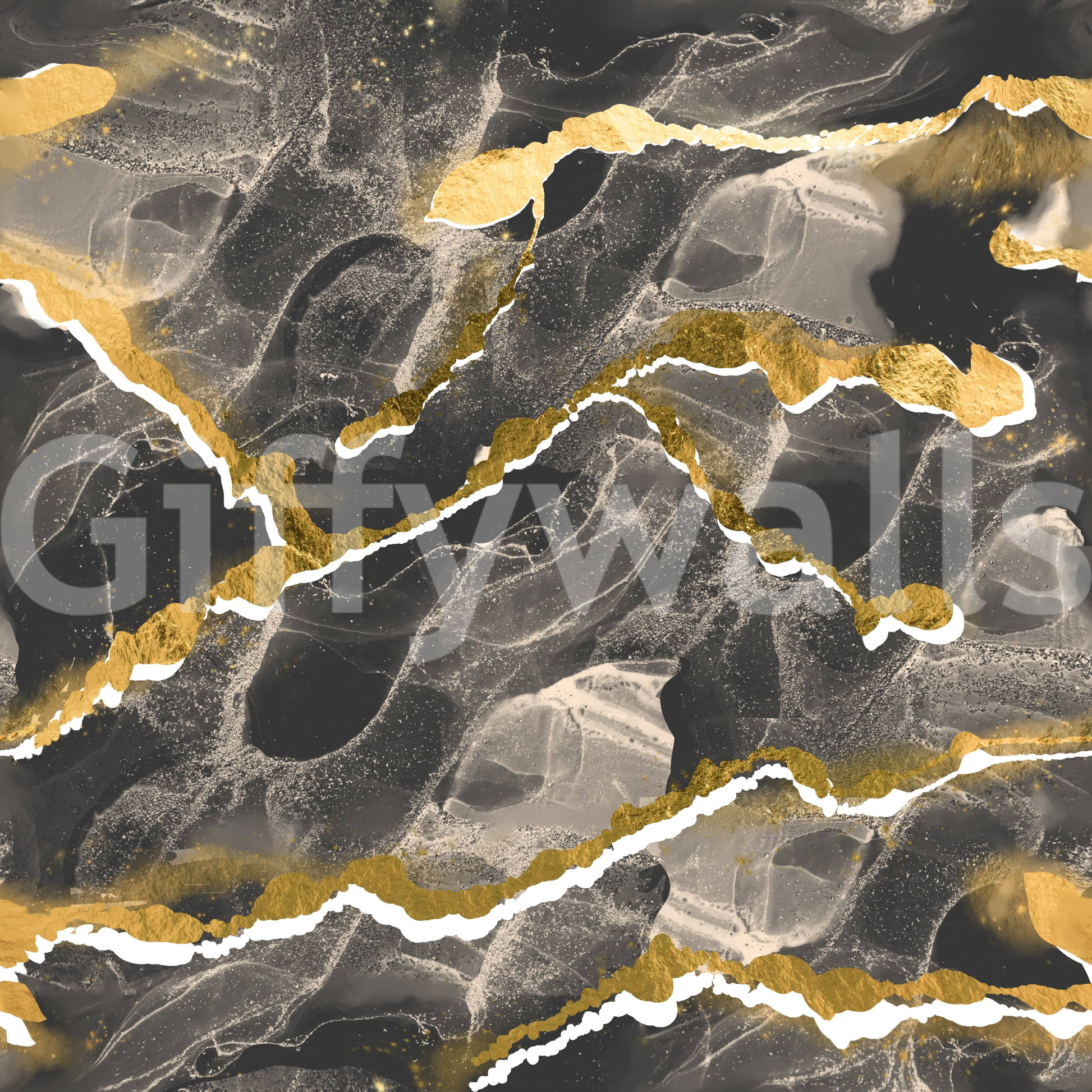 Indulge in the opulent allure of the 'Golden Veins Charcoal Marble' wallpaper. This modern luxe abstract design masterfully blends the dramatic depths of charcoal with the radiant shimmer of golden accents. Like veins of precious metal running through a dark, metamorphic stone, the golden lines cut across a mesmerizing marble-like texture, creating a sense of depth and movement. The blend of textures and colors adds to the overall luxuriousness. The design evokes a feeling of sophisticated elegance, adding a touch of grandeur to any space. Perfect for those who appreciate refined aesthetics, this wallpaper transforms ordinary walls into stunning works of art. Elevate your interior with the captivating drama and timeless beauty of this abstract masterpiece.