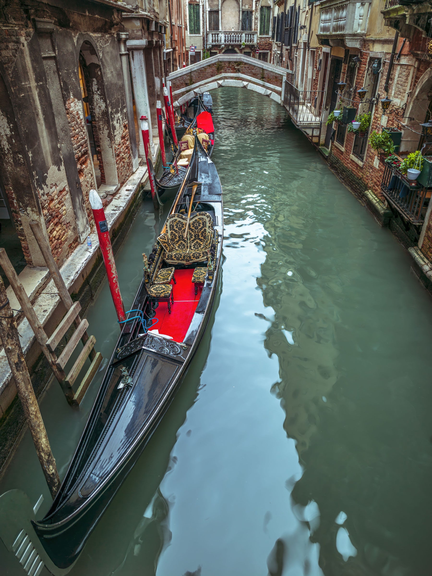 Gondola Dream Venetian canal wallpaper, narrow waterway boats picture.