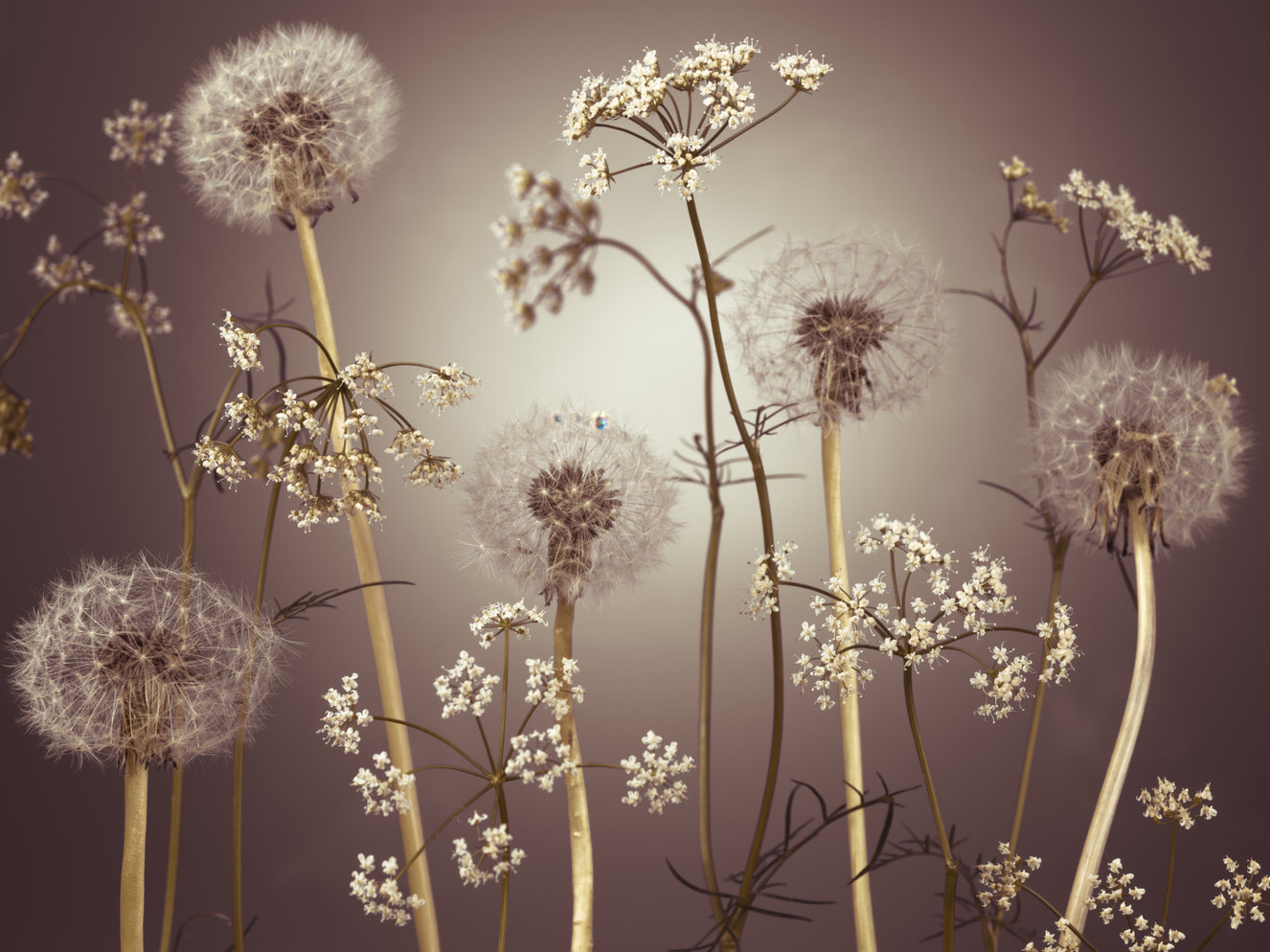 Grå baggrund blomster store grønne blade tapet vægmaleri