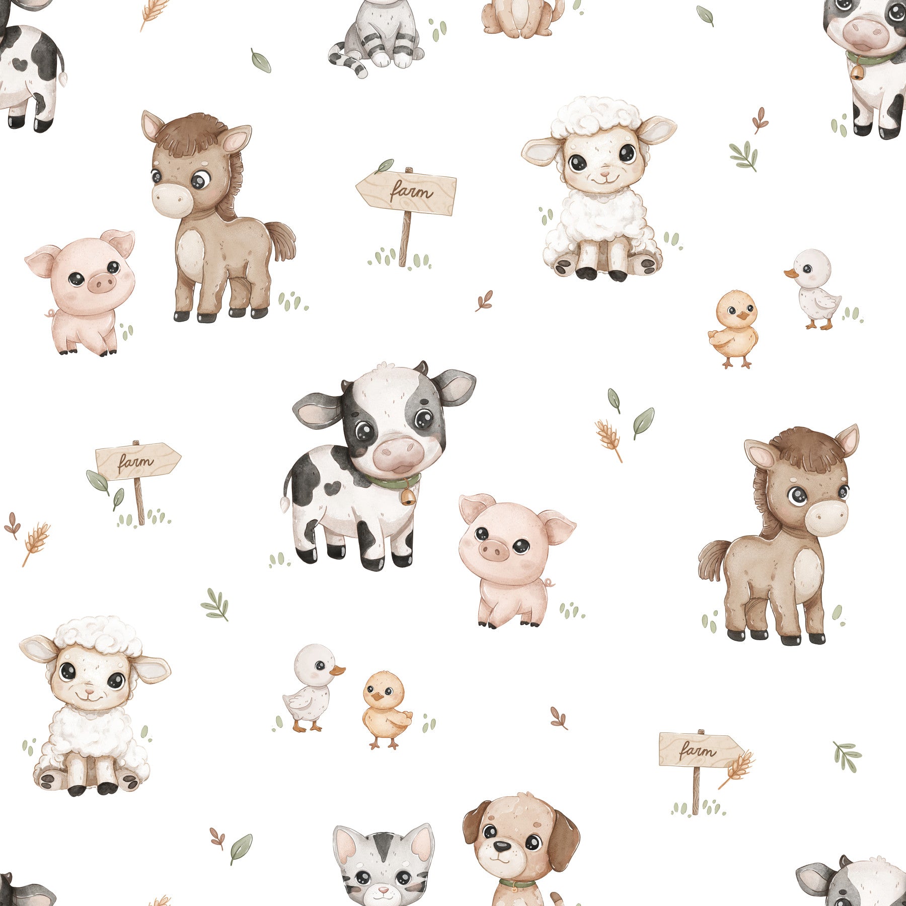 Omfavn den idylliske charme ved 'Happy Farmtime'! Dette dejlige tapet har en yndig samling af akvarelmandsdyr: legende smågrise, blide lam, charmerende heste, en venlig ko og fluffy ænder. Wooden 'Farm' -skilte og subtile botaniske elementer afslutter scenen, hvilket skaber en sød og finurlig atmosfære, der er perfekt til børneværelser eller enhver, der søger et munter, landskabsinspireret æstetisk. Den bløde farvepalet og charmerende illustrationer fremkalder en følelse af varme og ro og omdanner enhver digital enhed til en glad lille gård.