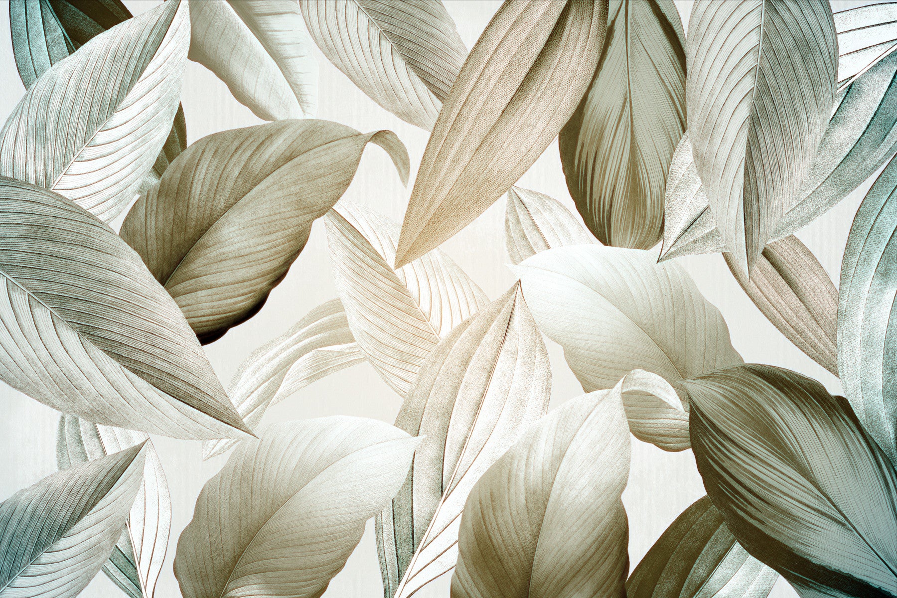 Oplev den subtile skønhed af 'hviskende blade', et tapetdesign, der viser en samling af intrikat detaljerede blade i en blød palet af dæmpede greener, cremer og brune. Det næsten monokromatiske farveskema og den delikate struktur af hvert blad skaber en beroligende og rolig atmosfære. Perfekt til soveværelser, badeværelser eller ethvert rum, hvor der ønskes et strejf af undervurderet elegance, blander dette tapet problemfrit naturlig skønhed med en minimalistisk æstetik. Det subtile samspil mellem lys og skygge inden i bladene tilføjer dybde og visuel interesse, hvilket omdanner ethvert rum til en oase af ro.