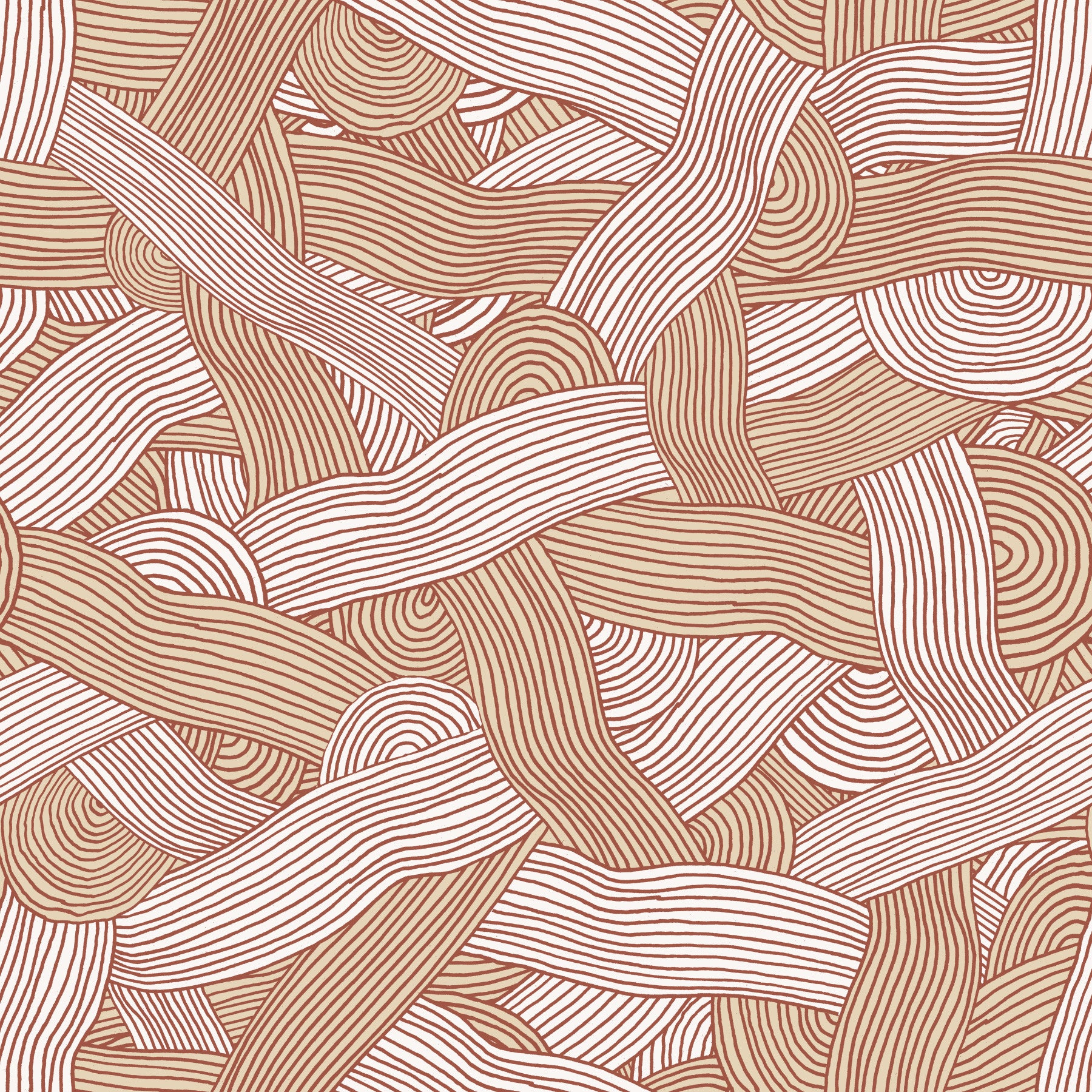 Vævet Sands er et fængslende tapetdesign med et kompliceret samspil af beige og terracotta -linjer, hvilket skaber en betagende struktureret effekt. Det sømløse mønster fremkalder en følelse af varme og rolig, der minder om solskinede klitter eller flydende stoffer. Dens organiske, håndtegnede kvalitet giver et strejf af kunst og raffinement, hvilket gør det perfekt til at tilføje et strejf af undervurderet elegance til ethvert rum. Den neutrale farvepalet giver den mulighed for at blande problemfrit med forskellige indvendige stilarter, fra minimalistiske til bohem. Lad de rytmiske linjer og jordagtige nuancer skabe en rolig atmosfære i dit rum.