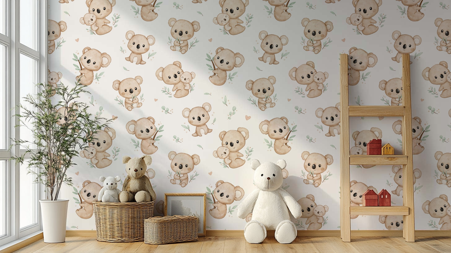 Bring et strejf af finurligt og varme til ethvert rum med Koala Cuddles tapet. Dette charmerende design er perfekt til at skabe en hyggelig, indbydende atmosfære beliggende blandt eukalyptusblade. Ideel til planteskoler eller børneværelser tilføjer det et legende, men alligevel beroligende element til din indretning. Lad disse kosede væsener inspirere til glæde og komfort, hvilket får hver dag til at føle sig som en dejlig tilbagetog til den australske busk. Tilføj karakter og charme til dine vægge med dette fortryllende koalamønster.