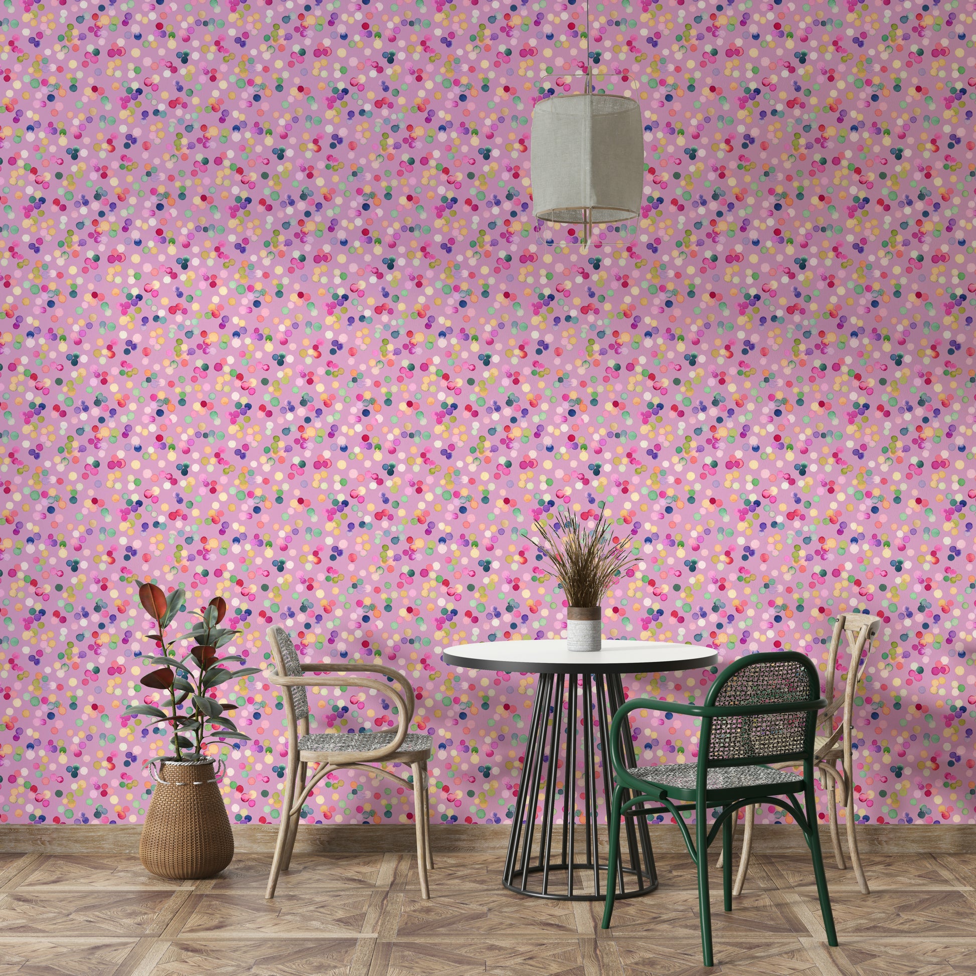 Konfetti festlige farverige prikker lyserød tapet⁠