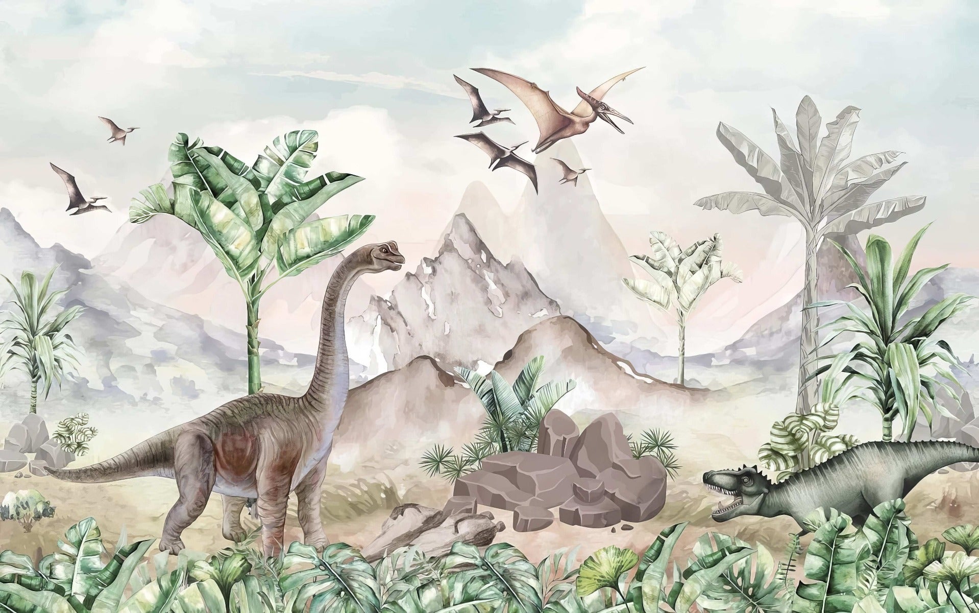 Lush Cretaceous scenery mural perfect for kids' rooms.