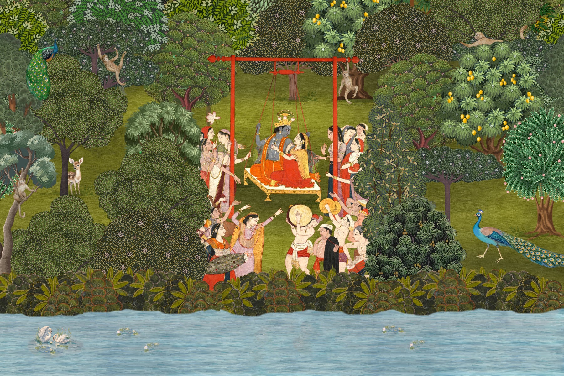 Krishna's Garden Swing Wall Mural