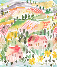 Rolling hills of Tuscany wallpaper with watercolor effect