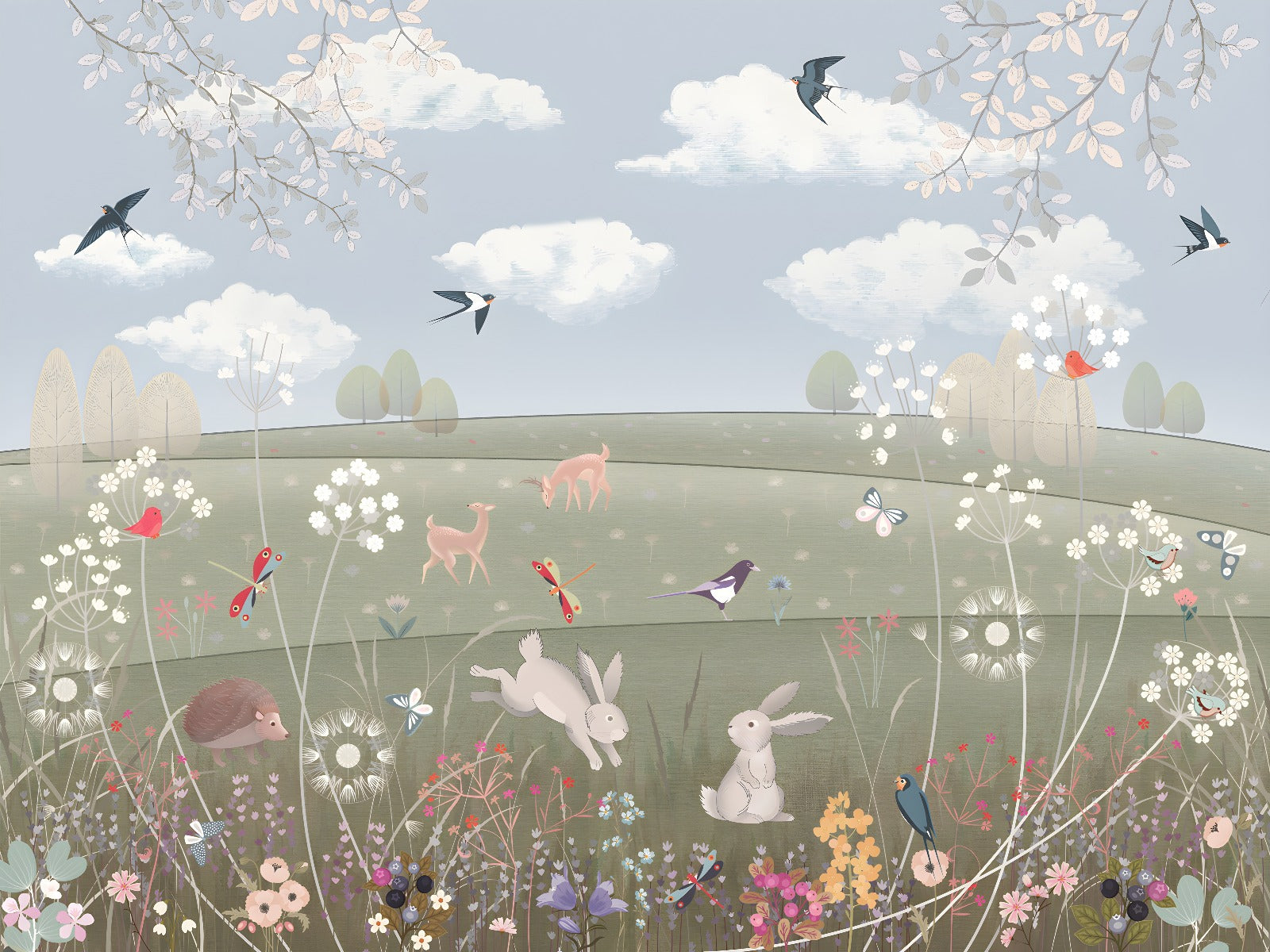 Enchanted garden wallpaper showcasing a serene countryside scene