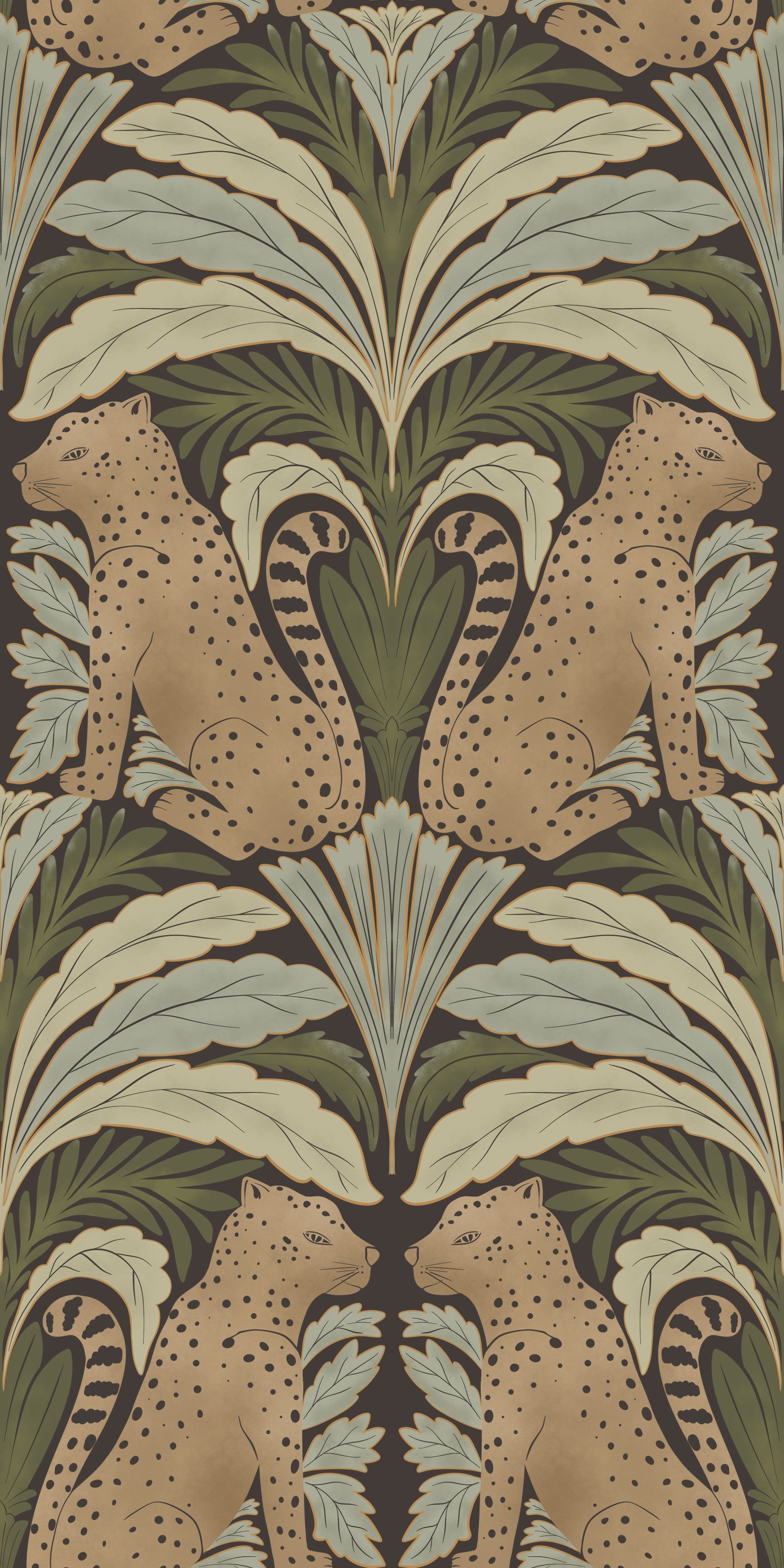 Leopard's Lair: Botanical Symmetry Wallpaper⁠