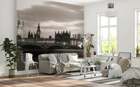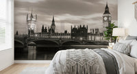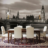 England, London, Westminster Bridge. Forvandl din bolig med et tidløst arkitektonisk design. Dette vægtapet indfanger de ikoniske Houses of Parliament og Big Ben i en sofistikeret sepiatone. Den klassiske Londons skyline giver et strejf af historie og storhed til ethvert rum. Den monokrome palet gør det alsidigt nok til at forbedre forskellige indretningsstile, fra moderne minimalistisk til traditionel indretning. Overvej at tilføje det til din stue, dit arbejdsværelse eller din entré for at skabe et fængslende blikfang. Oplev Londons charme hver dag med dette elegante statement.
