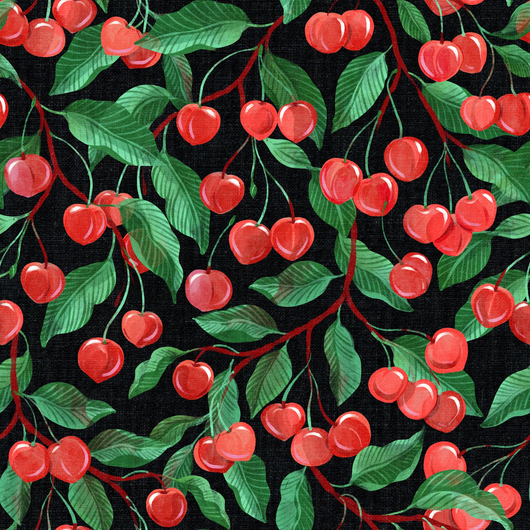 Forkæl dig med den rige visuelle struktur af "maleriske kirsebær sort." Denne fængslende tapet viser en malerisk gengivelse af saftige røde kirsebær, omhyggeligt detaljeret med en dyb sort baggrund. De pulserende kirsebær, gengivet med en akvarellignende effekt, hænger fra realistisk afbildede grene pyntet med frodige grønne blade. Den subtile lærredstekstur tilføjer dybde og kunst, hvilket skaber et sofistikeret og stilfuldt baggrund, der er både moderne og tidløst. Perfekt til at tilføje et strejf af saftig elegance til ethvert digitalt rum.