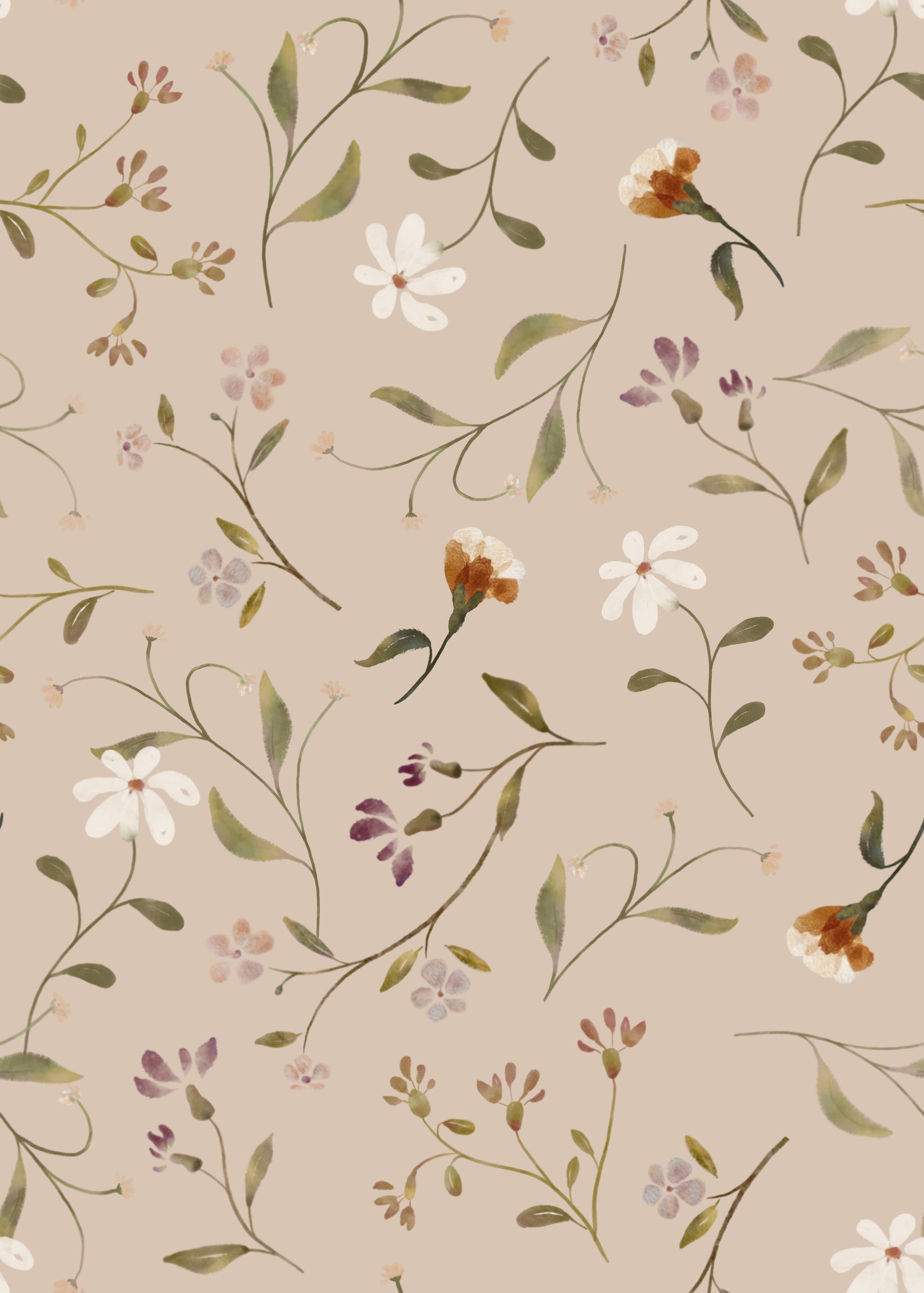 Cream wallpaper featuring delicate vintage flowers
