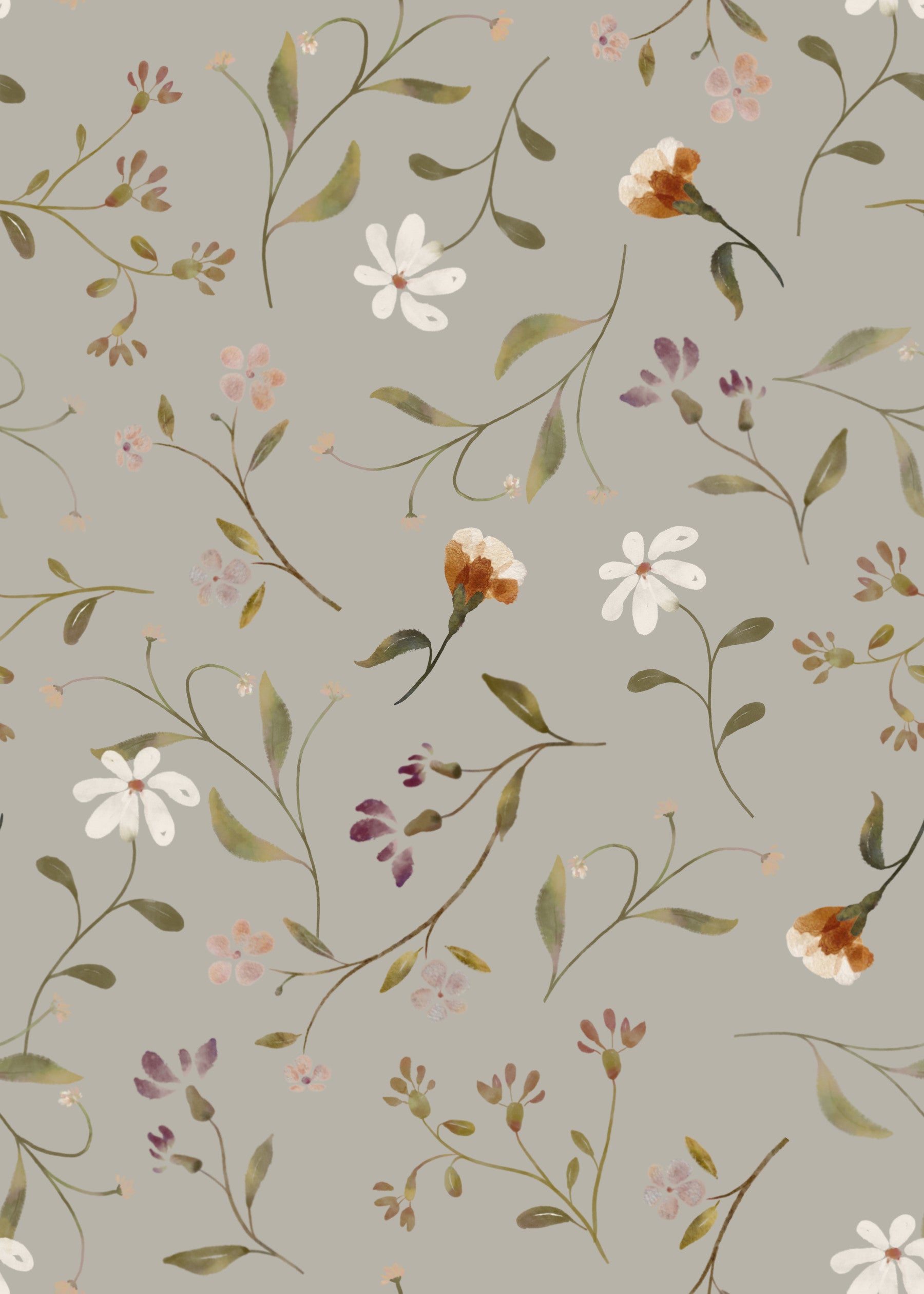Endelig af en blid, solskinnet eng, 'Memories in Petals Wallpaper⁠ Olive' fanger essensen af ​​wistful erindring. Delikat akvarelblomster i dæmpet oliven, fløde og russet nuancer danser over et blødt grå baggrund. Det tilsyneladende ubesværede arrangement af vilde blomster og slanke stængler skaber en beroligende, nostalgisk atmosfære. Dette tapet er perfekt til dem, der søger et roligt og undervurderet blomsterdesign, der hvisker af elskede øjeblikke og fredelig kontemplation. Den jordagtige farvepalet fremkalder en følelse af ro og tidløs skønhed, hvilket gør det til et alsidigt valg for ethvert rum.
