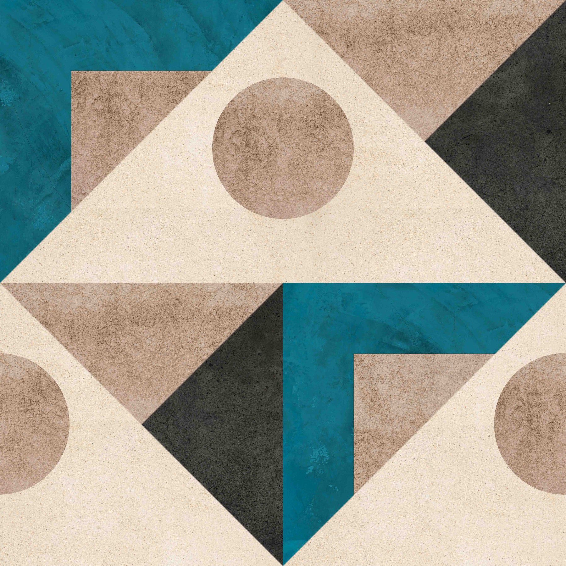 Fremkalder de rene linjer og geometriske elegance i den moderne århundrede moderne tid med dette slående tapet. Dette design har et fængslende arrangement af overlappende trekanter og cirkler i en dæmpet palet af fløde, taupe, dyb teal og trækul. Den forsætlige anvendelse af tekstur i hver form tilføjer et lag med visuel dybde, der efterligner den håndlavede kvalitet, der ofte findes i midten af ​​århundredes design. Samspillet mellem former og subtile farvevariationer skaber et sofistikeret og tidløst look, perfekt til at tilføje et strejf af vintage charme til ethvert rum. Dens afbalancerede sammensætning sikrer en visuelt tiltalende baggrund, der er både stilfuld og alsidig.