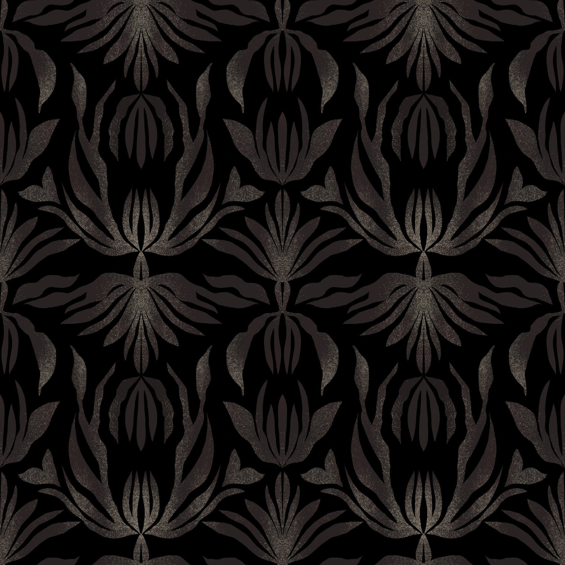 Midnight Bloom Damask art deco style abstract palm leaves Wallpaper⁠