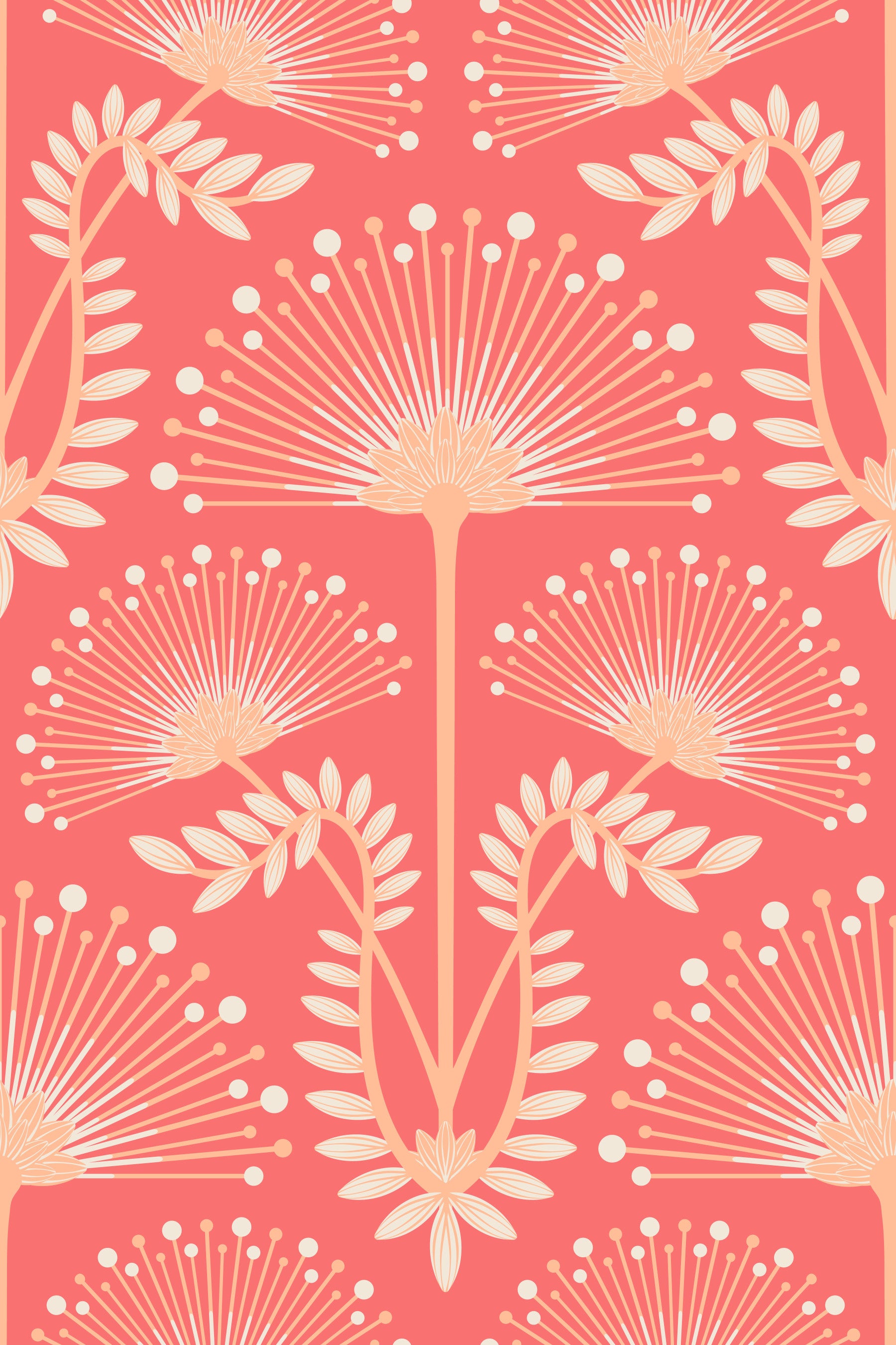 Mimosa Art Deco Floral Botanical Damask Pastel Peach Fuzz Orange Coral Red tapet⁠