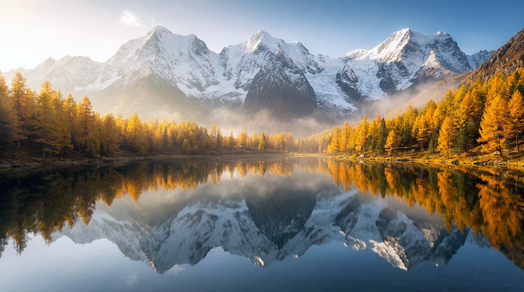 Løft din indretning med vægtapetet Mirror Mountain Vista, der fremviser en majestætisk bjergkæde, der spejler sig i en rolig, klar sø. Denne vægdekoration skaber en fredelig atmosfære med sin afbalancerede komposition og naturlige farveskema. Forestil dig at forvandle dit soveværelse til et afslappende fristed eller tilføje dybde til din entré. Tapetets livlige gyldne nuancer fra efterårstræerne står smukt i kontrast til de kølige, snedækkede bjerge, hvilket gør det velegnet til en bred vifte af indretningstemaer. Installer dette tapet for at bringe skønheden fra naturen direkte ind i dit hjem og forstærke en følelse af ro og rummelighed.