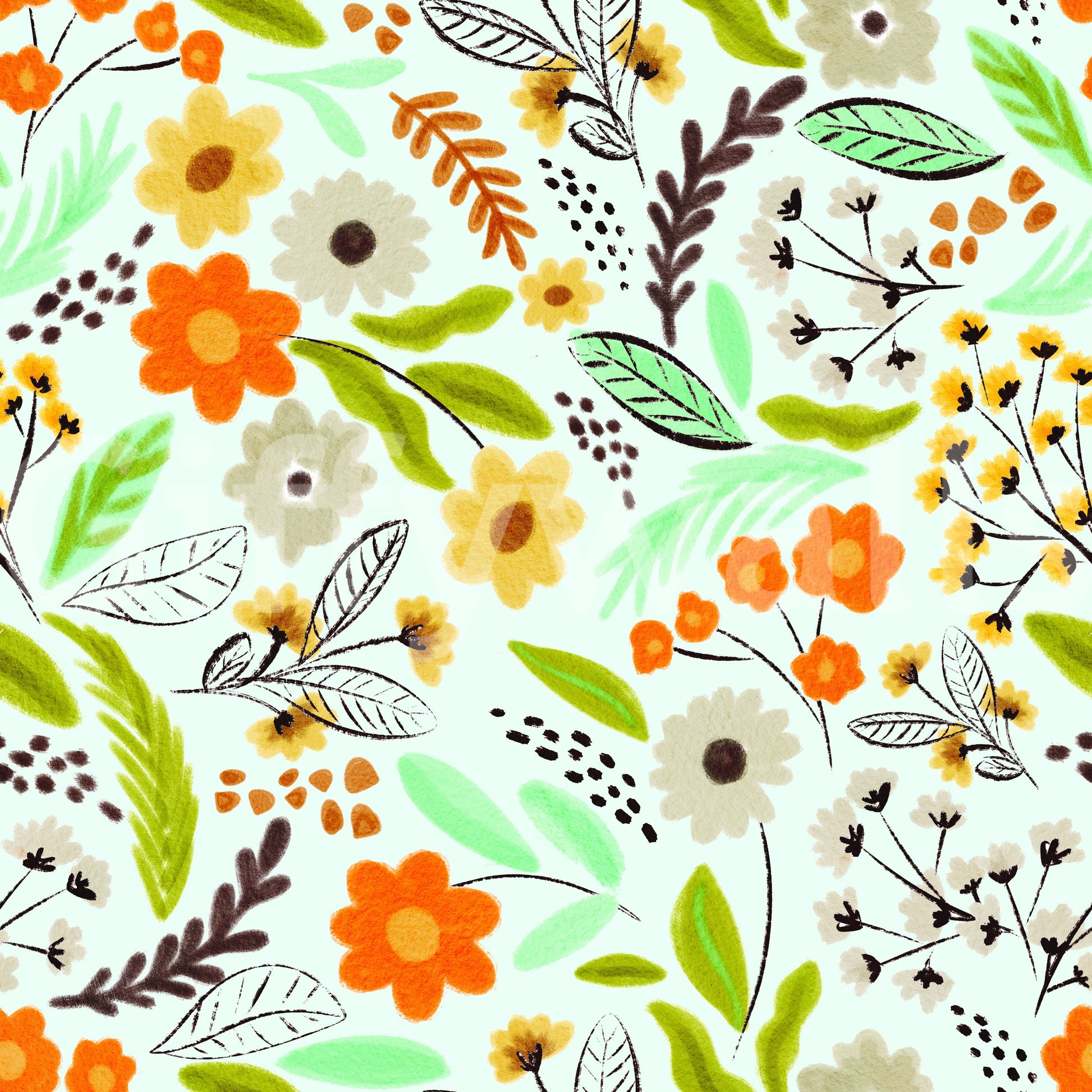 Bright floral wallpaper featuring meadow blooms