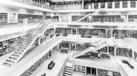 Immerse yourself in the serene silence of the 'Monochrome Library'. This captivating wallpaper features a stunning, multi-tiered library bathed in shades of black and white. The intricate architecture, with its soaring staircases and endless rows of books, creates a visually compelling and thought-provoking atmosphere. The stark contrast highlights the geometric patterns and textures, drawing the eye into a world of knowledge and quiet contemplation. Feel the weight of history and the promise of discovery as you gaze upon this grand repository of wisdom, a perfect backdrop for inspiring focus and stimulating the mind. A minimalist and sophisticated choice, this monochrome masterpiece will add a touch of intellectual elegance to any space.