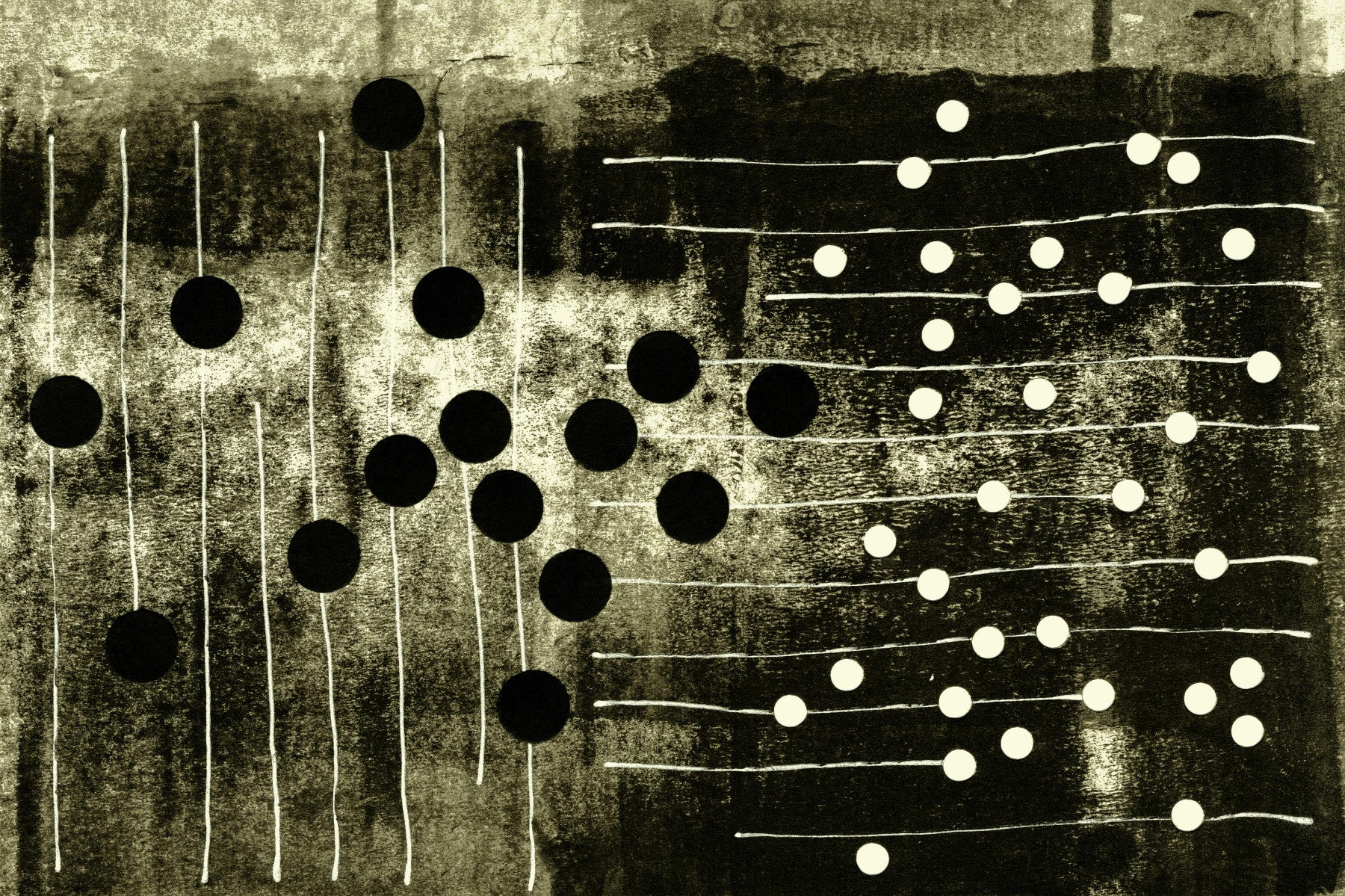 Immerse yourself in the captivating world of Monochrome Rhythms a wallpaper that transforms the simplicity of black and white into a visually arresting experience. This design isn't just a pattern; it's a composition of contrasting forms, where dark circles suspended by delicate lines dance in harmony with their lighter counterparts arranged along textured horizontal bands. The interplay creates a sense of depth and movement, reminiscent of a minimalist musical score. The textured background adds a layer of organic imperfection, contrasting beautifully with the clean geometry of the circles and lines. This juxtaposition evokes a sense of controlled chaos, a visual representation of complex emotions expressed through simple forms. 'Monochrome Rhythms' is perfect for those who appreciate abstract art, minimalist aesthetics, and the power of visual storytelling. Its timeless elegance and subtle dynamism will add a sophisticated touch to any digital space.