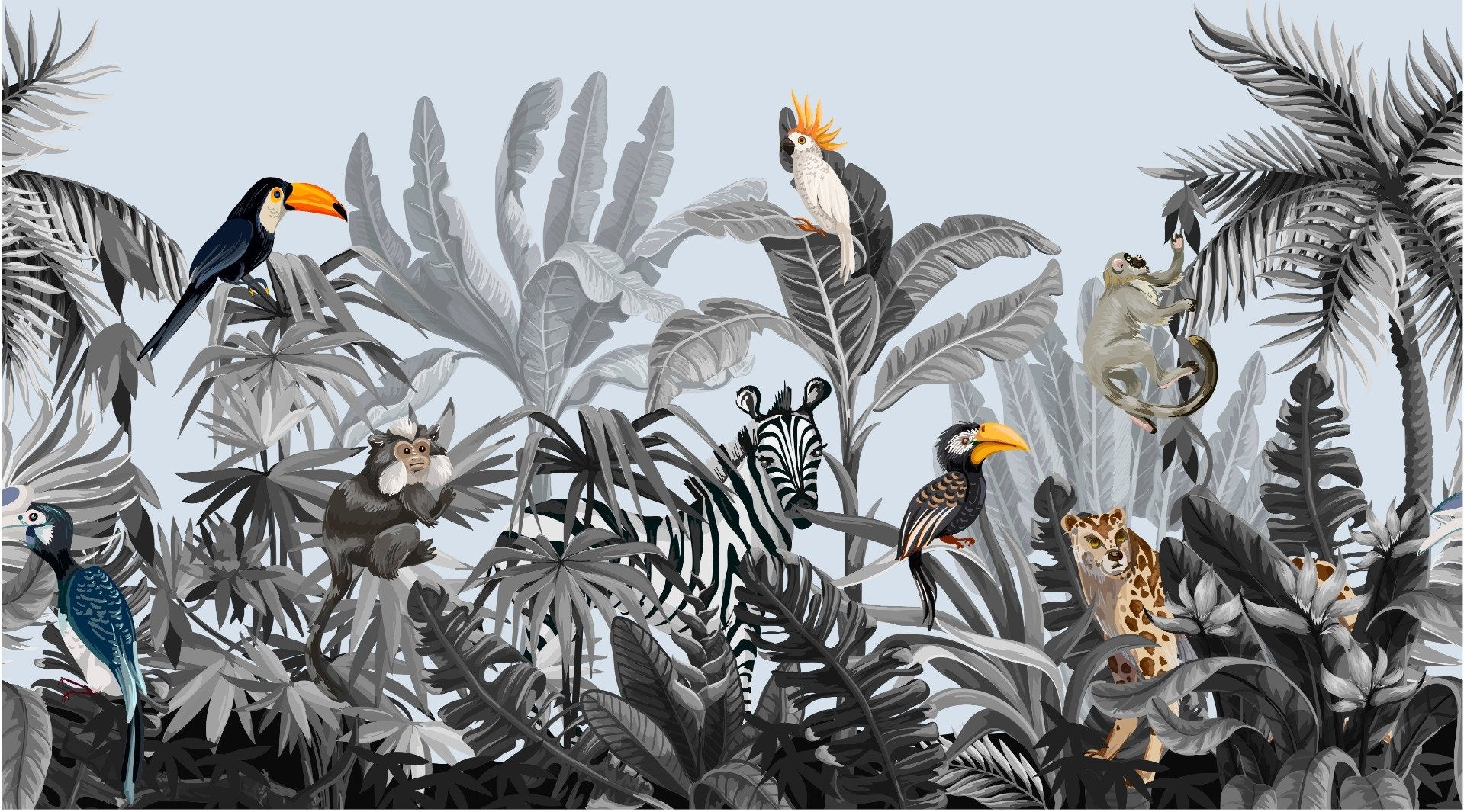 Modern Monochrome Jungle Wallpaper for Kids