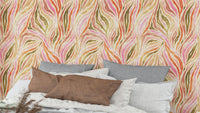 Omfavne en pulserende og sofistikeret stil med denne "multicolor tekstureret zebra print" tapet. Designet har en unik vri på det klassiske zebramønster, der viser flydende, buede striber i en fængslende palet af støvede rose, varme appelsiner, dæmpede guld og jordiske greener. En subtil struktureret effekt tilføjer dybde og visuel interesse, hvilket skaber en luksuriøs og let bohemsk fornemmelse. Dette tapet er perfekt til at tilføje et strejf af elegant vildskab til ethvert rum, fra soveværelser til stuer, hvilket bringer en blanding af moderne kunstnerisk og naturlig inspiration til dine vægge.
