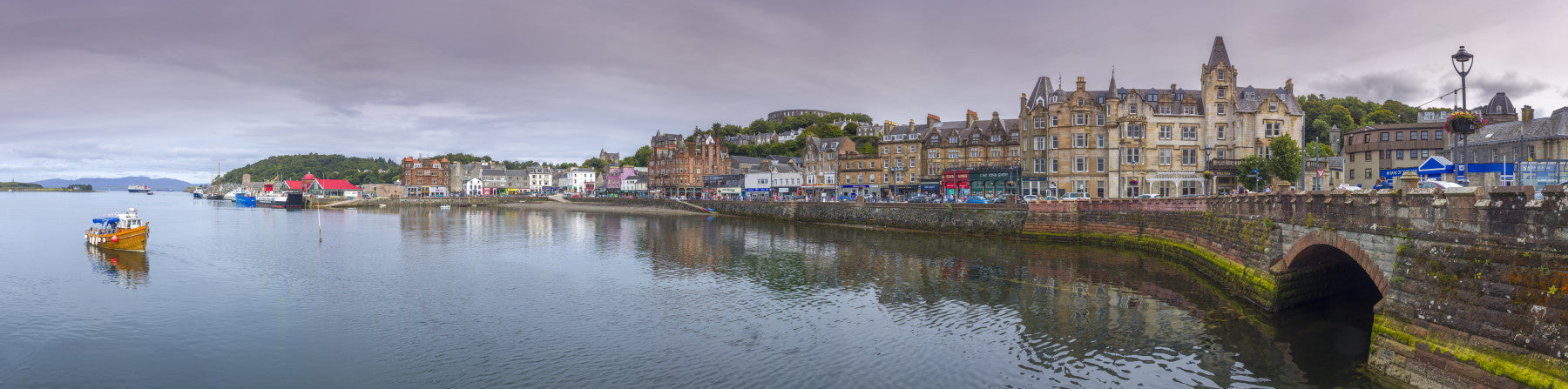 panoramic view of oban harbor scotland