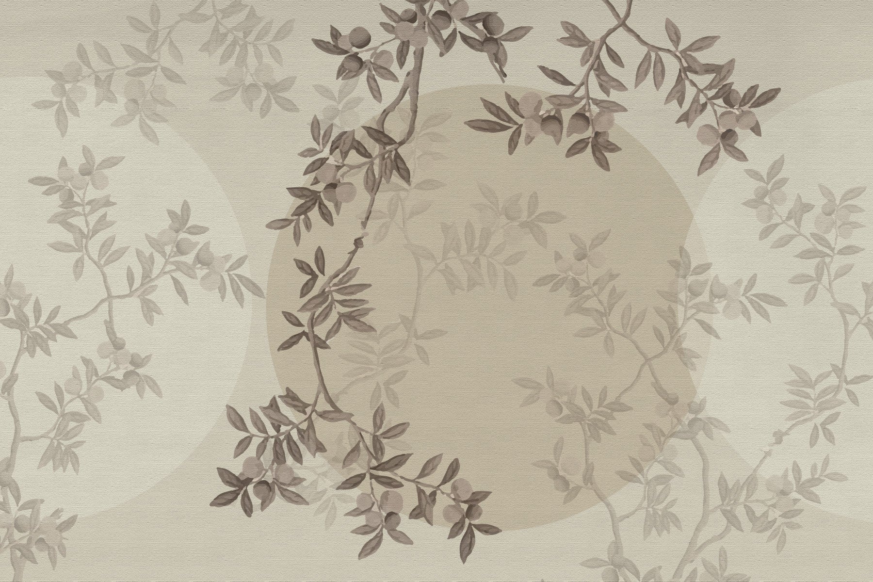 Transform your interior with the subtle charm of this botanical design. Branches adorned with olives create a pattern that brings a sense of nature indoors. A subdued color palette of beige and taupe provides a backdrop, making this wallpaper for walls versatile enough for various rooms. The minimalist design enhances the ambiance of a dining room, living room, or bedroom, creating a relaxing and organic atmosphere. The muted tones complement a space, enhancing the room’s inherent character, and allow existing décor to stand out.